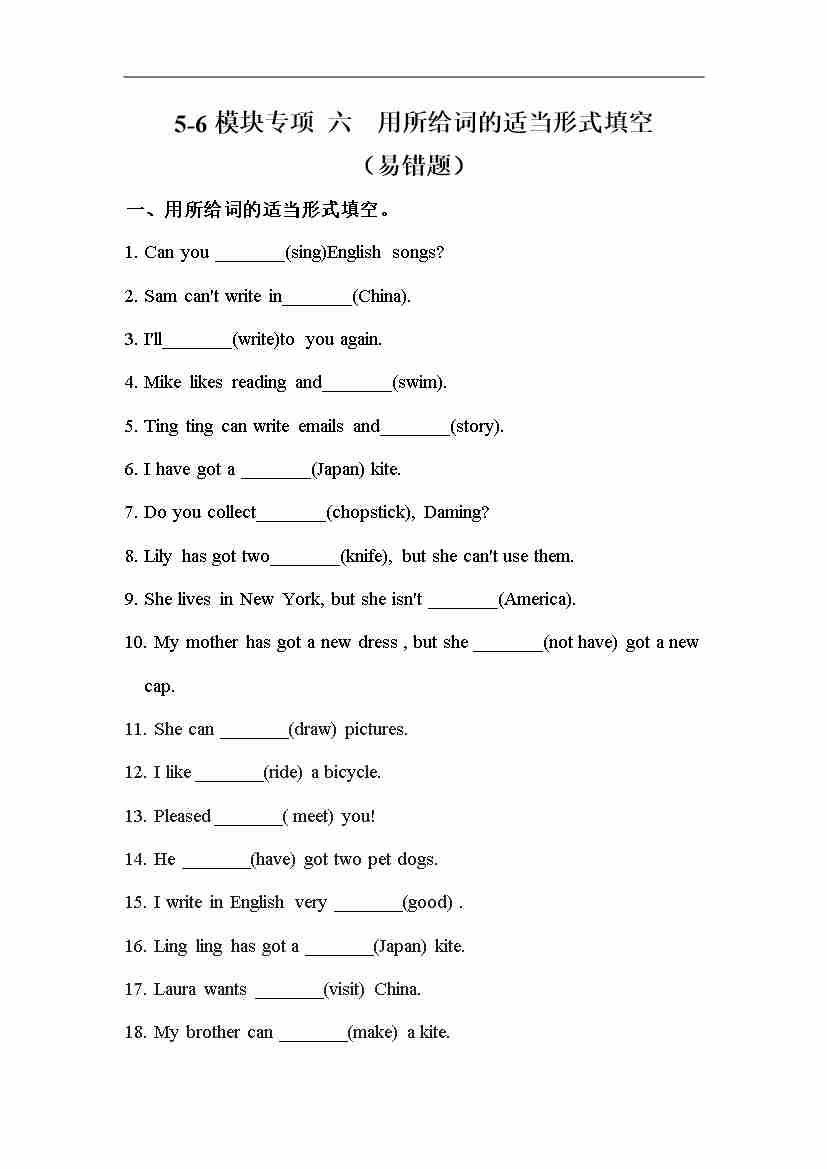 【易错题专项 六 用所给词的适当形式填空】单元专项 5-6模块 六年级英语上册 外研版(三起)含答案