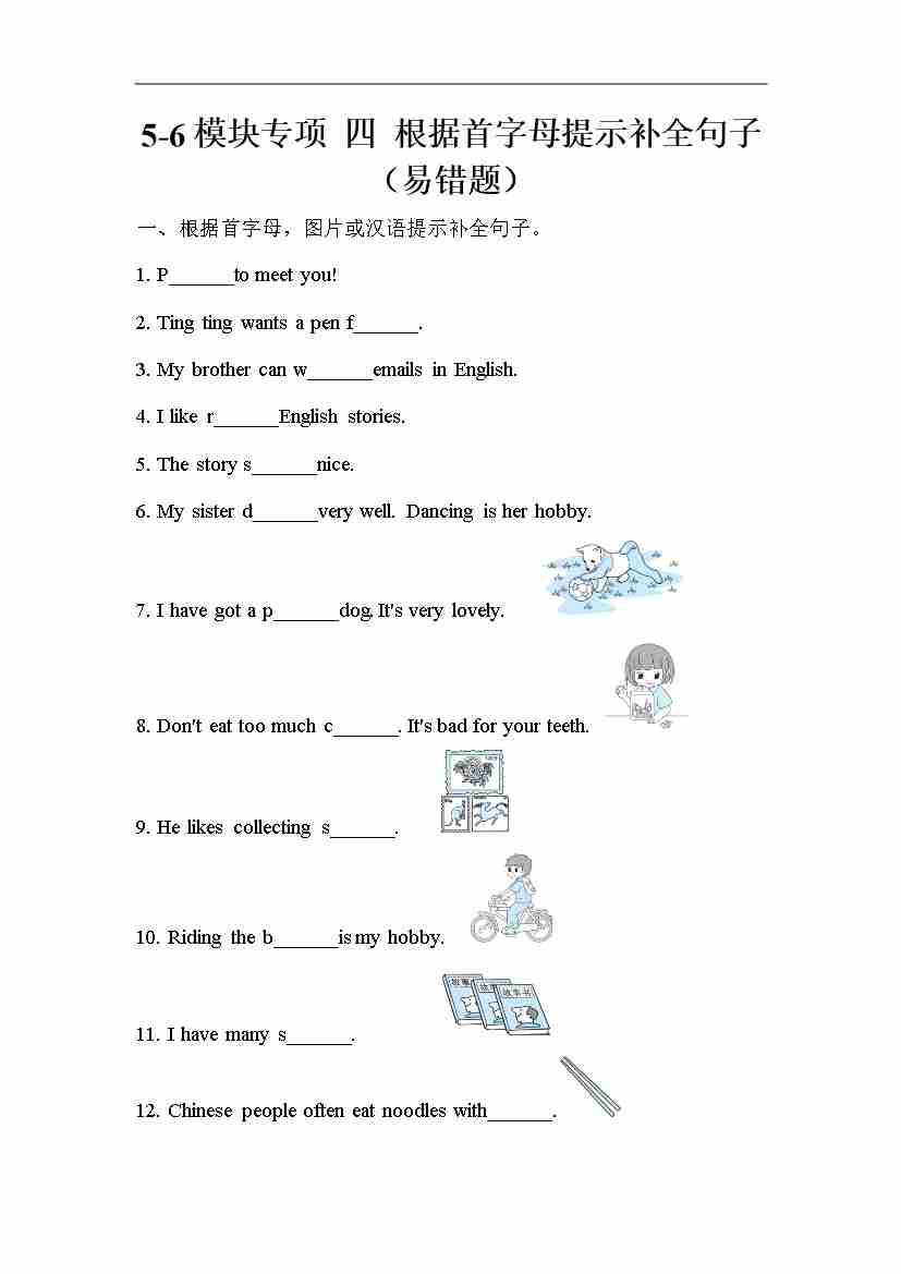 【易错题专项 四 根据首字母提示补全句子】单元专项 5-6模块 六年级英语上册 外研版(三起)含答案