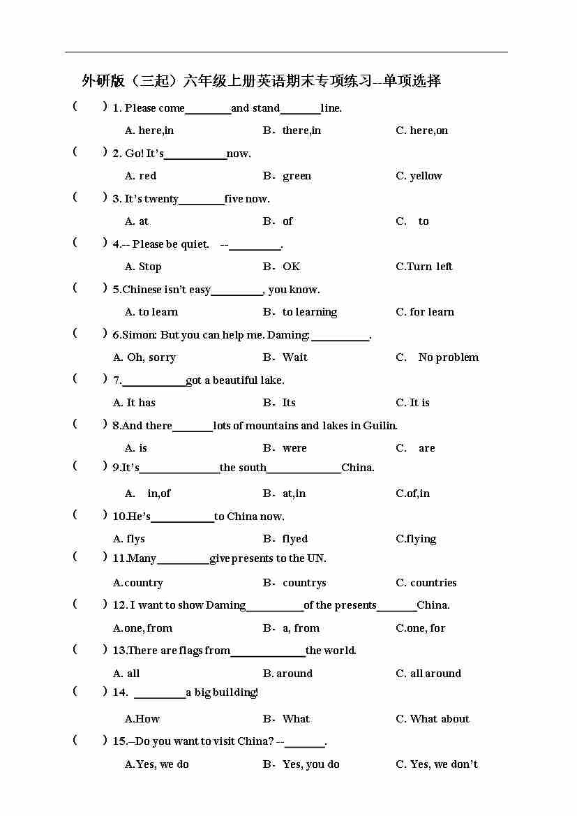 最新外研版(三起)六年级上册英语期末单项选择专项练习(含答案)
