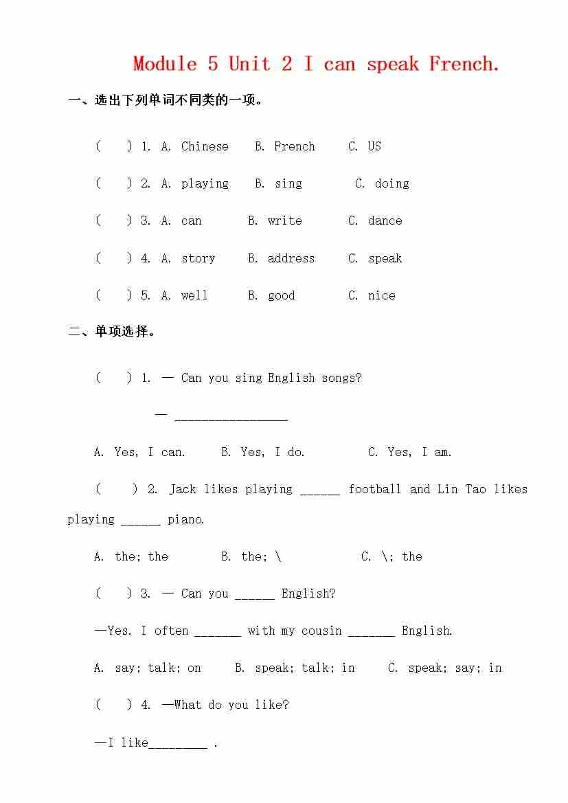 六上 Module5 Unit 2 练习