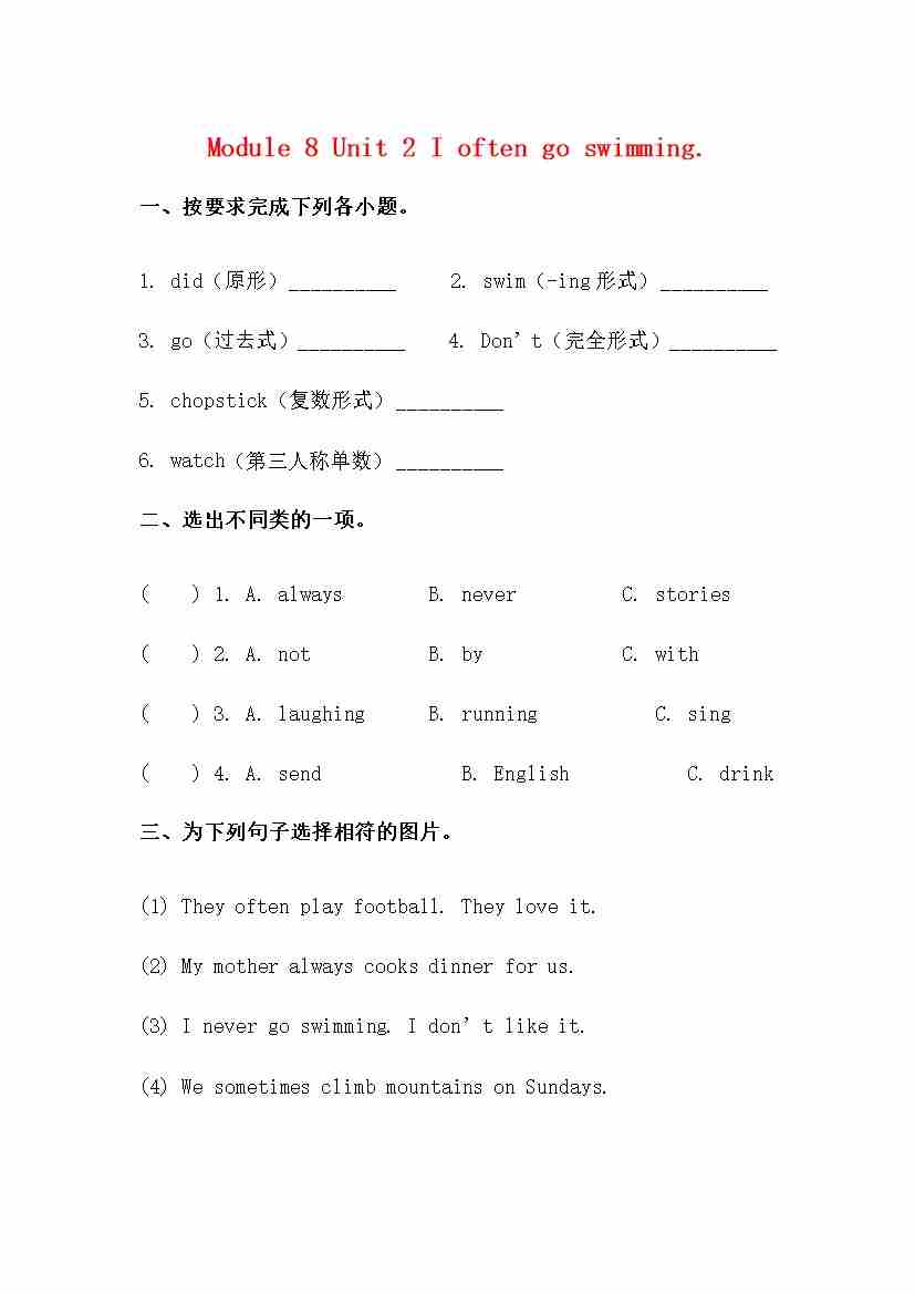 六上 Module8 Unit 1 练习