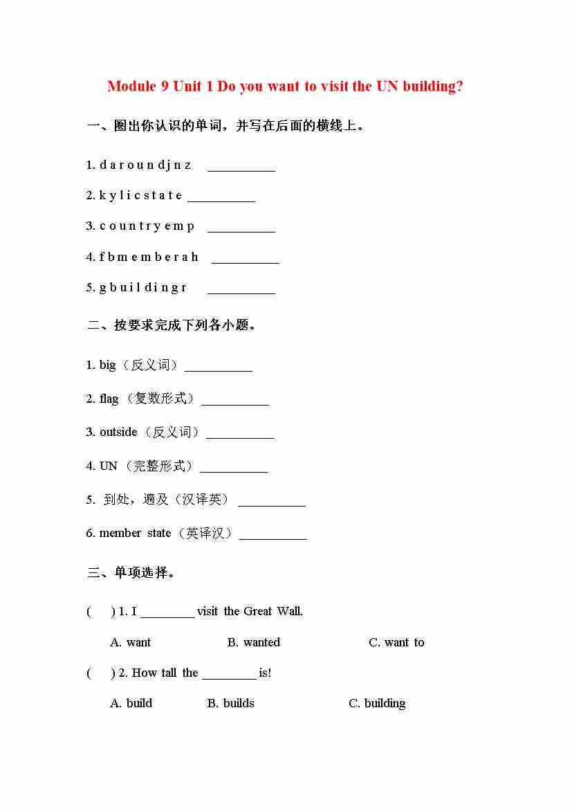 六上 Module9 Unit 1 练习