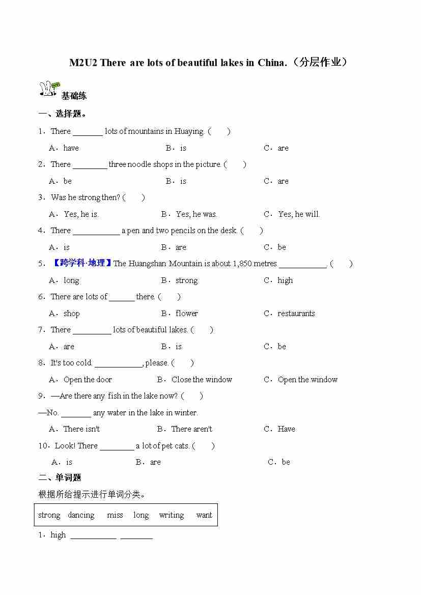 M2U2 There are lots of beautiful lakes in China.(分层作业)英语外研版三起六年级上册