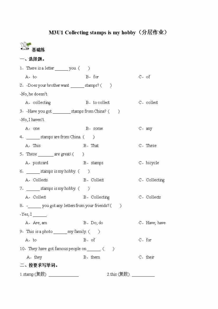 M3U1 Collecting stamps is my hobby.(分层作业)英语外研版三起六年级上册