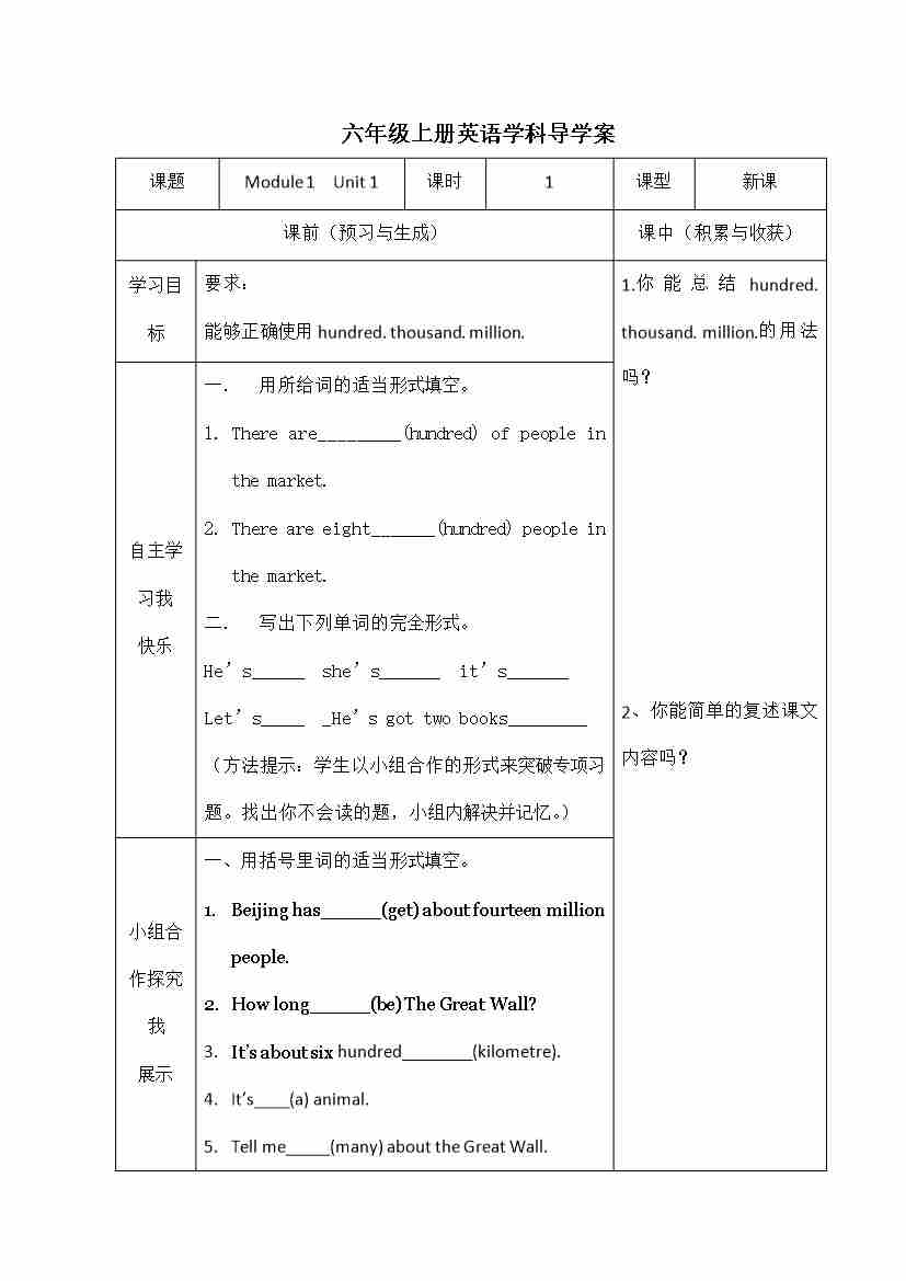 M1U1 It’s more than twenty thousand kilometres long(分层作业)英语外研版三起六年级上册