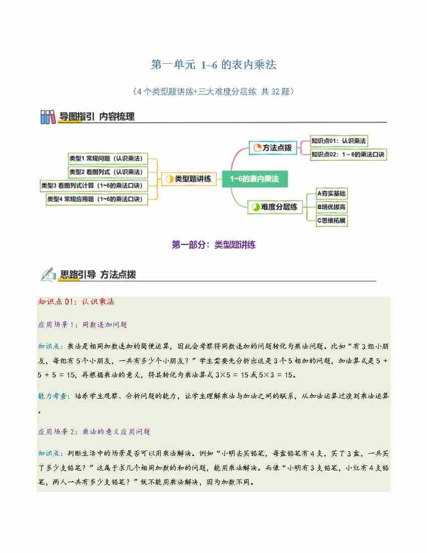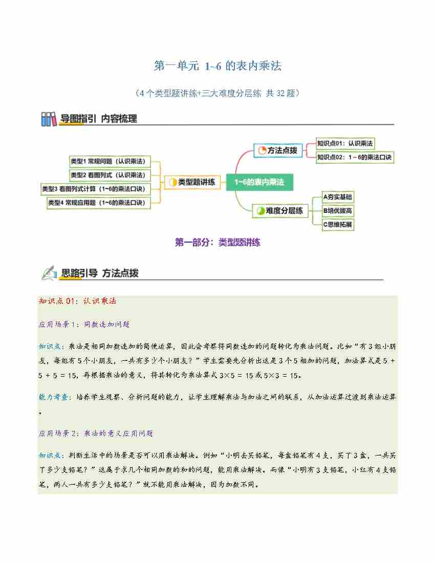 第一单元 1~6的表内乘法(知识清单)数学苏教版二年级上册(原卷版)