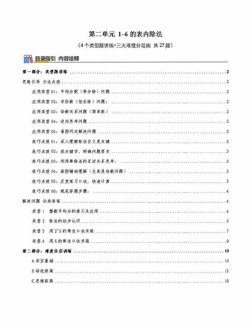 第二单元 1~6的表内除法(解决问题专项)数学苏教版二年级上册(解析版)