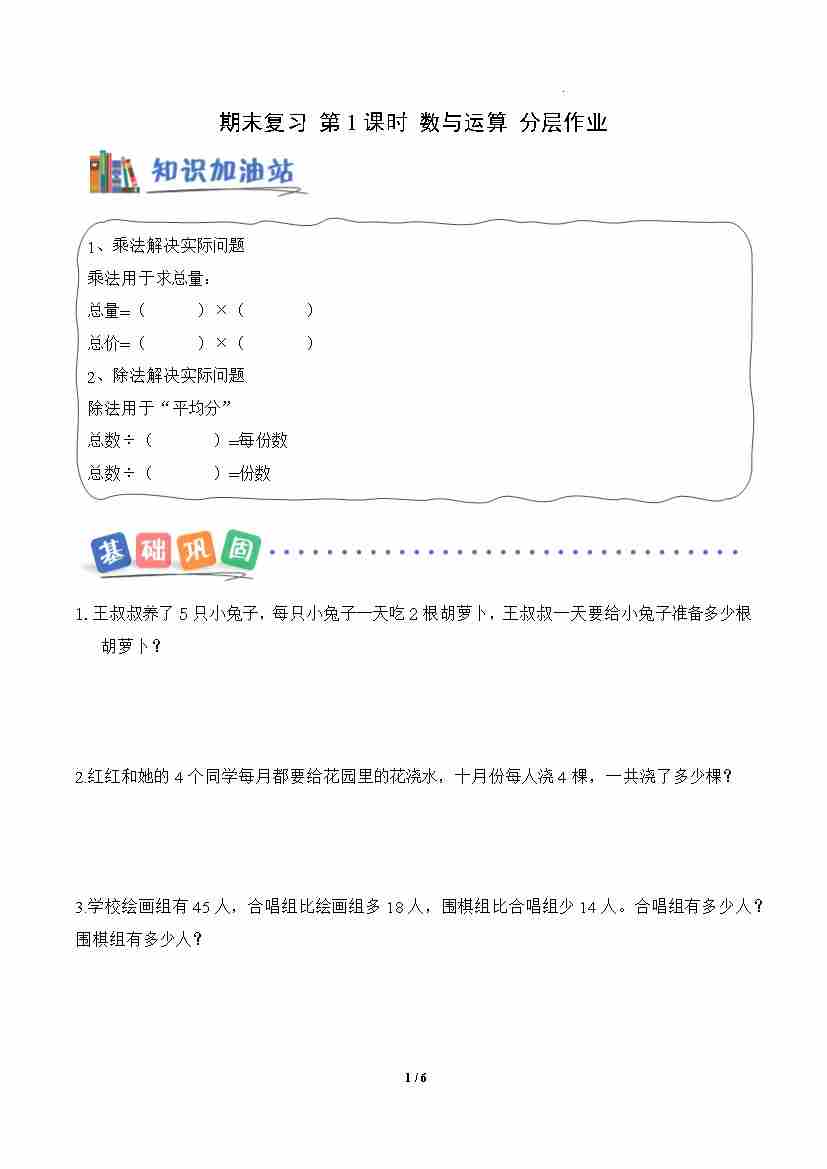 期末复习 第2课时 数量关系(分层作业)数学苏教版二年级上册 (新教材)