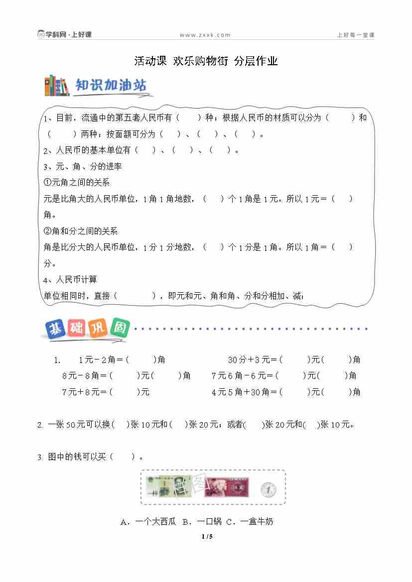 活动课 欢乐购物街(分层作业)数学苏教版二年级上册 (新教材)