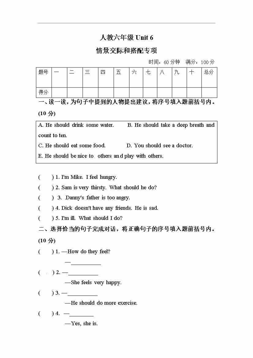 【单元专项训练】六年级上册英语-Unit 6 How do you feel 交际和搭配 人教PEP版 (含答案)
