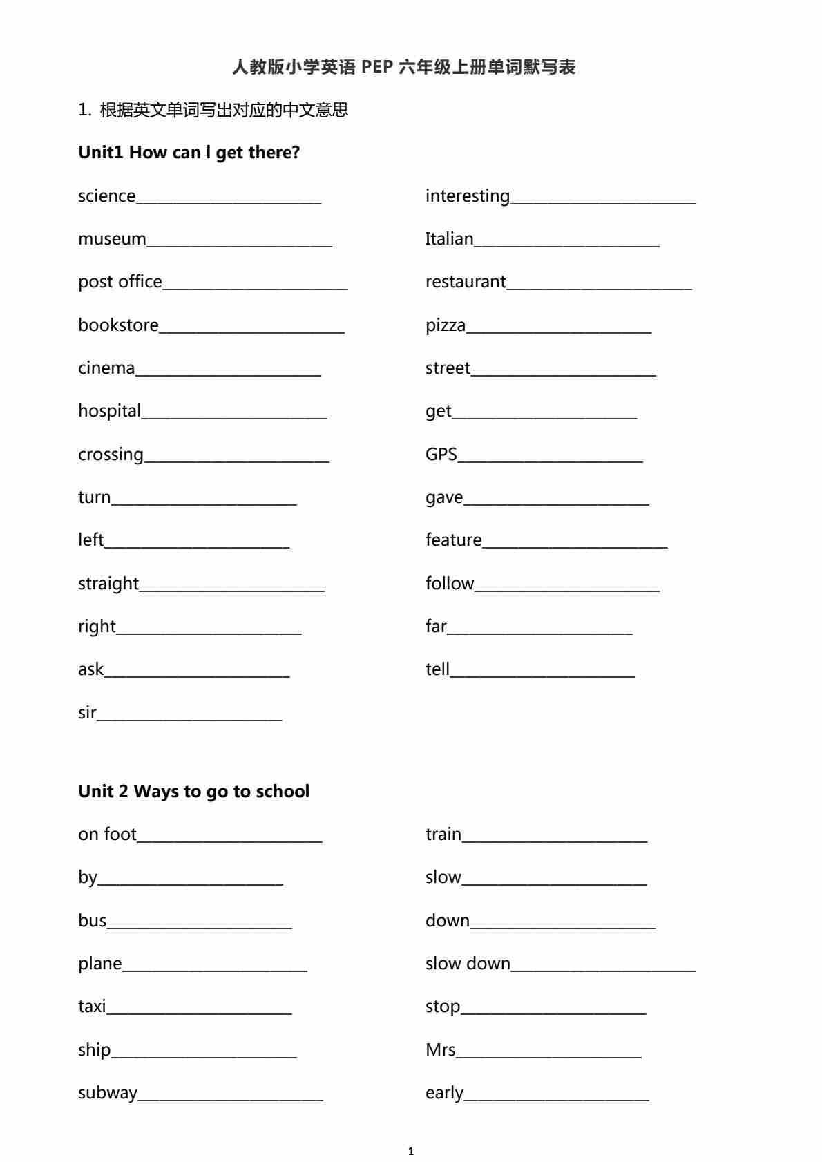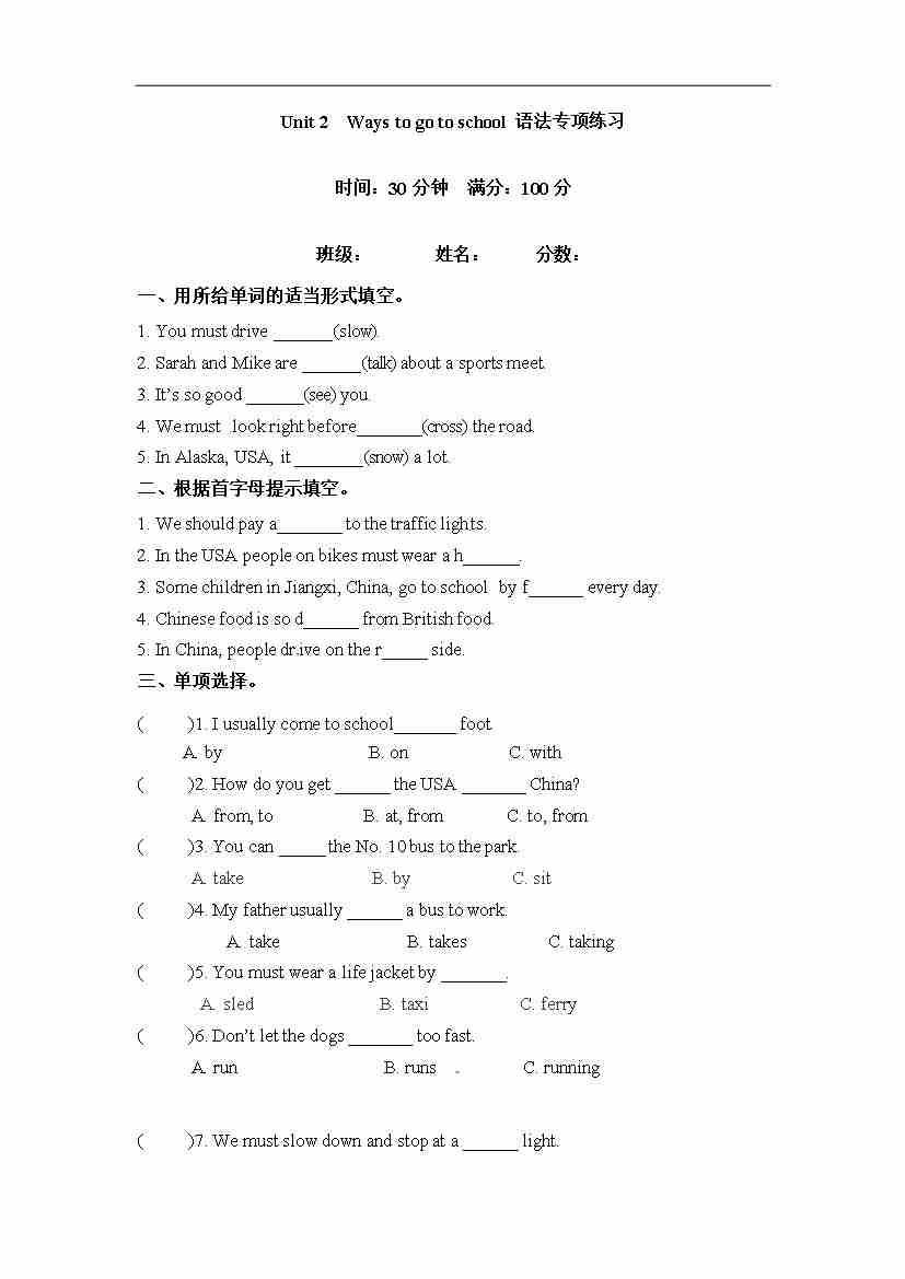 【核心语法】六年级上册英语语法专训- Unit 2 Ways to go to school 人教PEP(含答案)