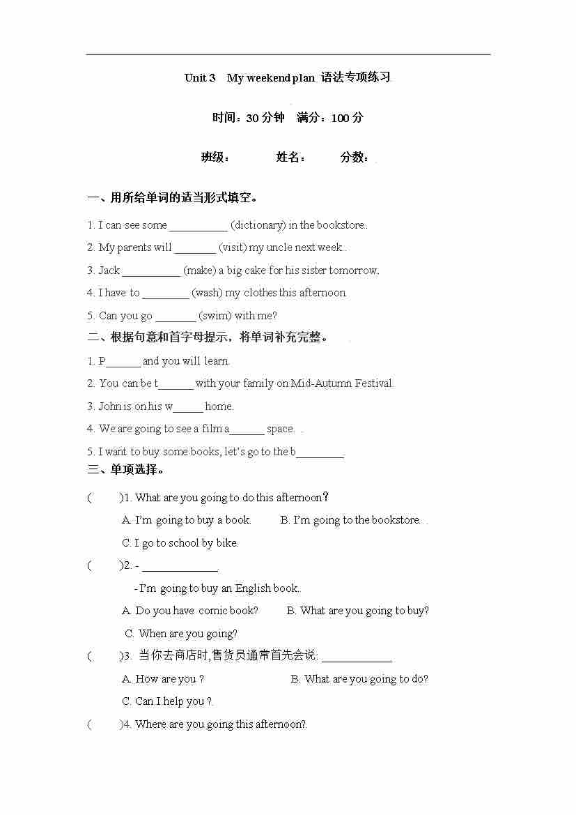 【核心语法】六年级上册英语语法专训- Unit 3 My weekend plan 人教PEP(含答案)