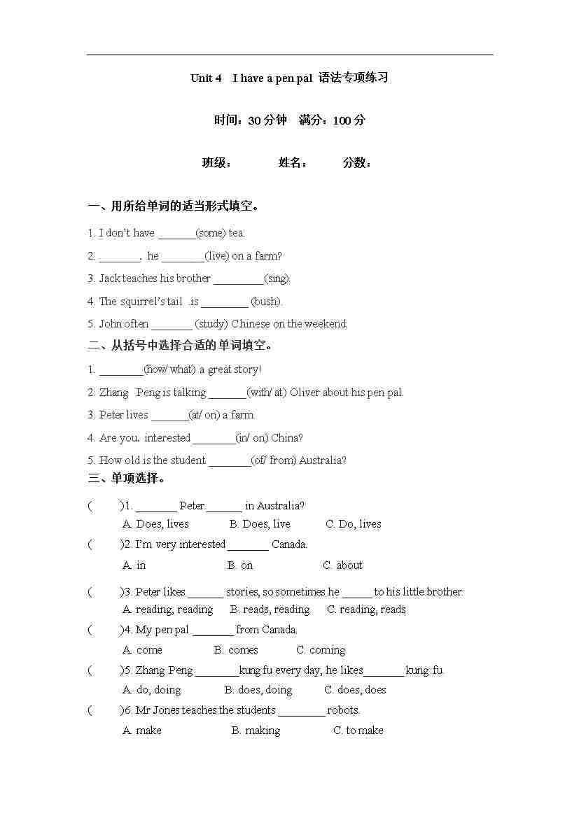 【核心语法】六年级上册英语语法专训- Unit 4 I have a pen pal 人教PEP(含答案)