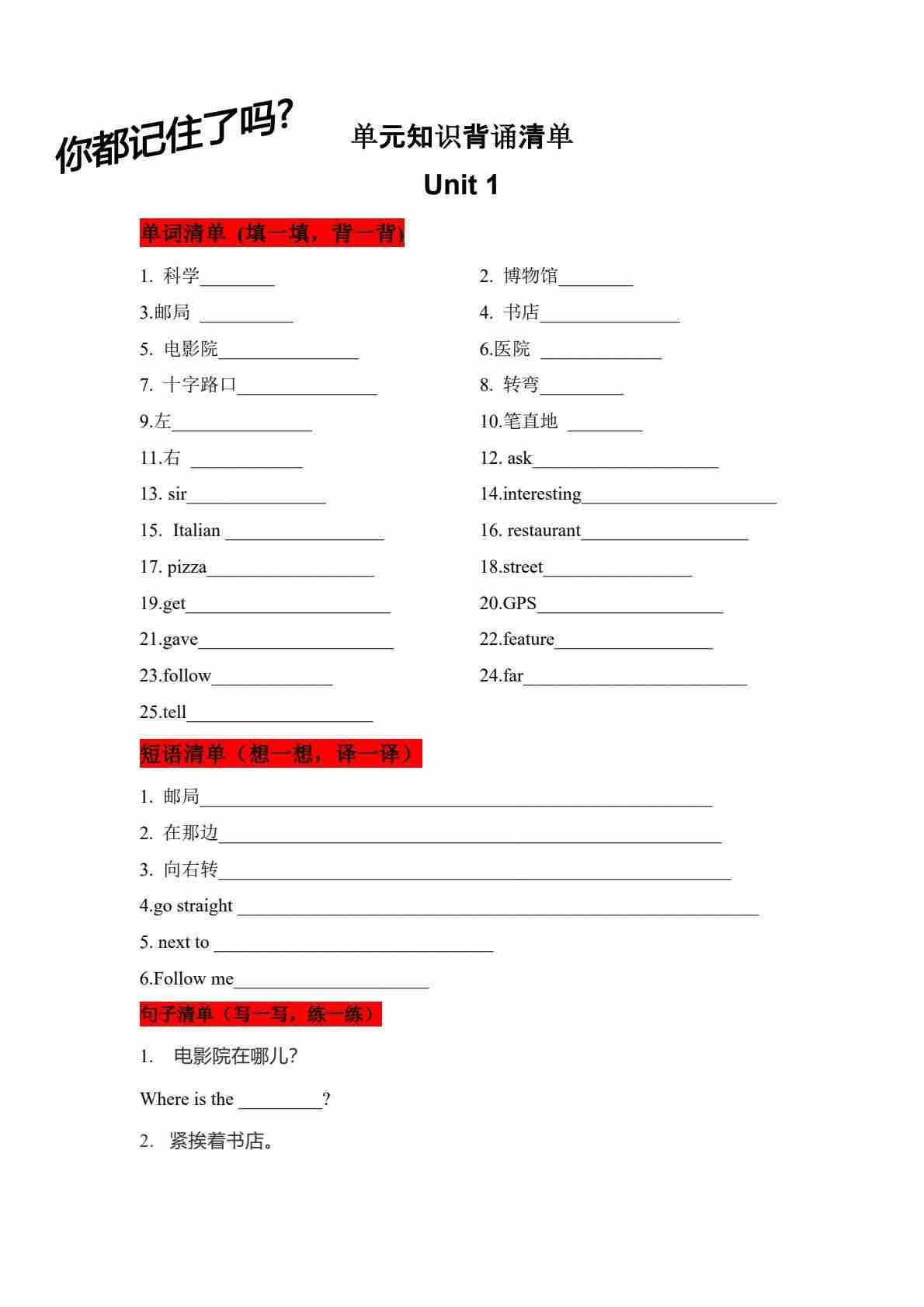 【核心语法】六年级上册英语语法专训- Unit 1 How can I get there? 人教PEP(含答案)