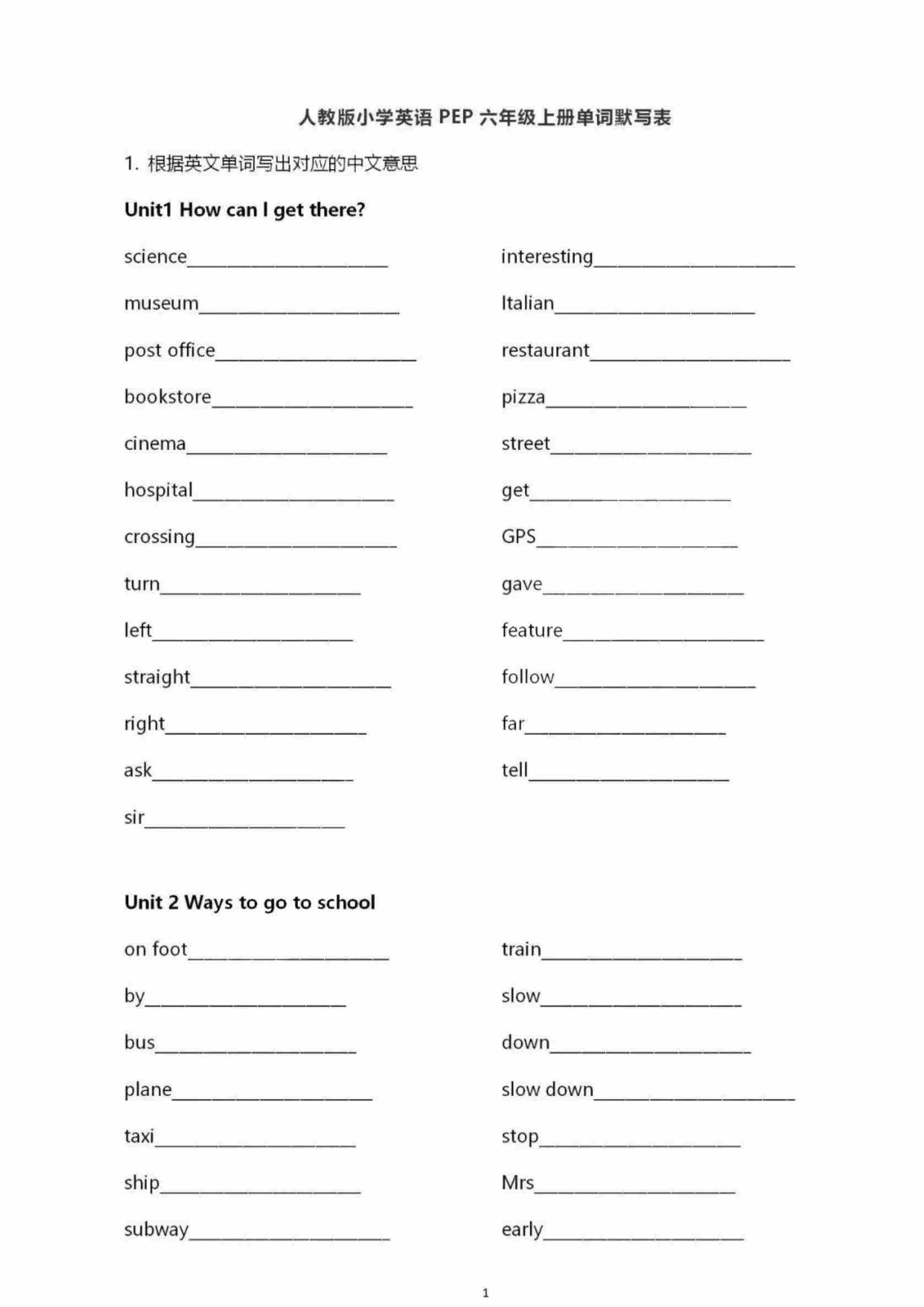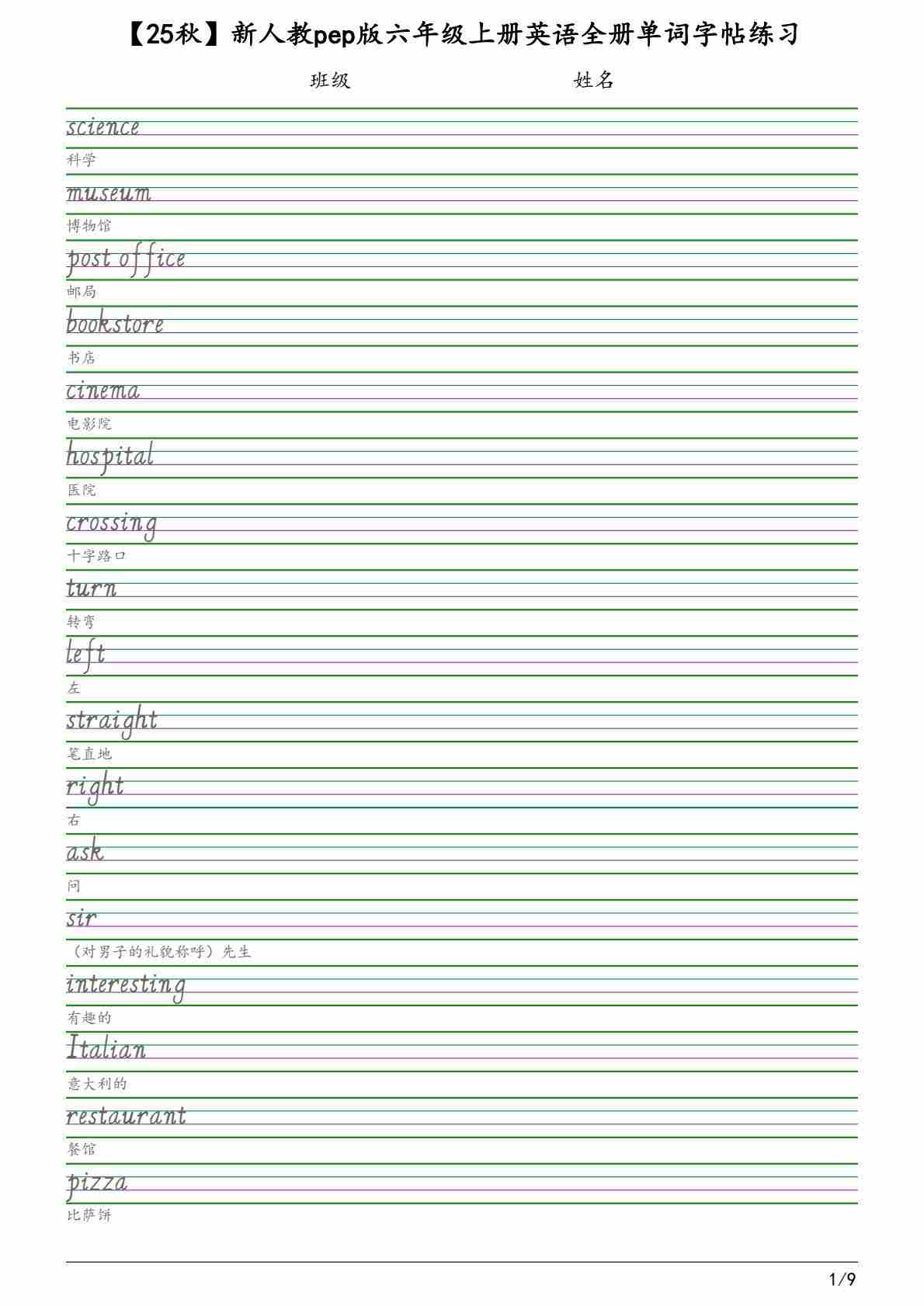 六上人教PEP版英语【25秋-全册单词字帖练习】