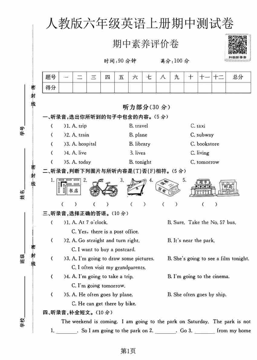 六上人教PEP版英语【25秋-五星学霸(答案解析)】