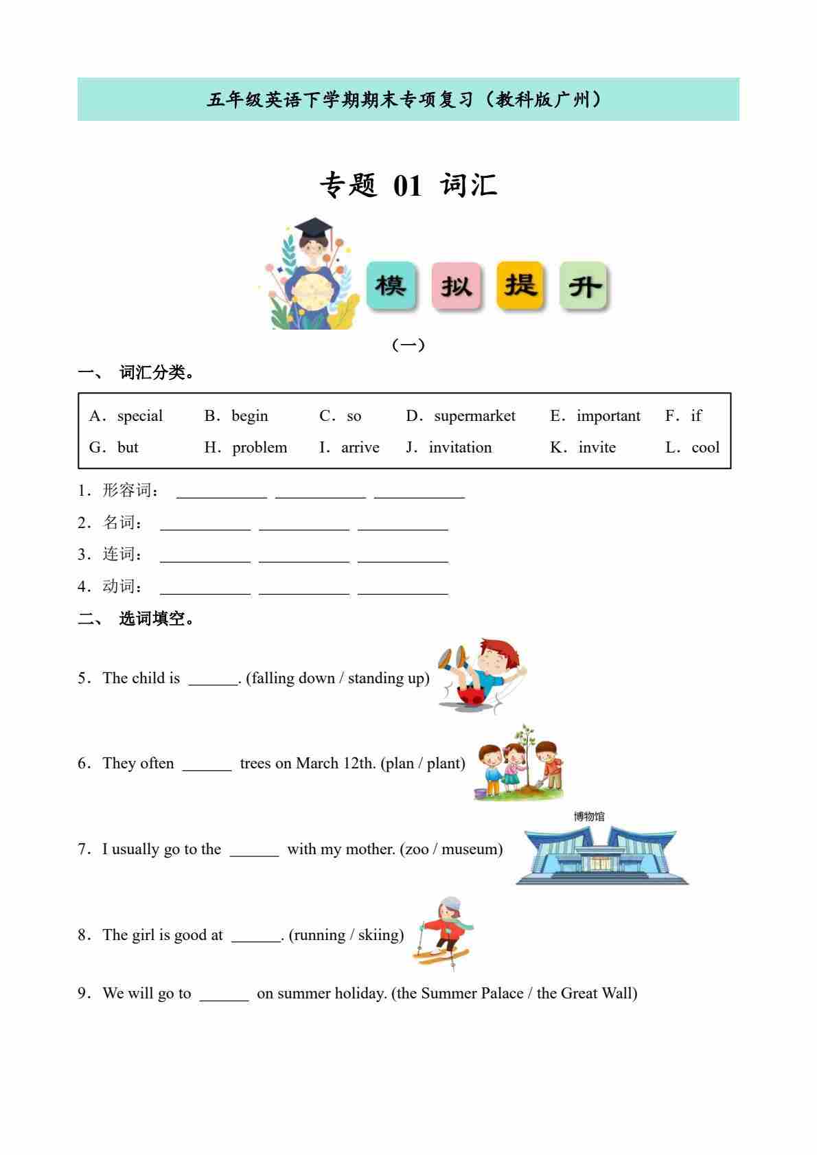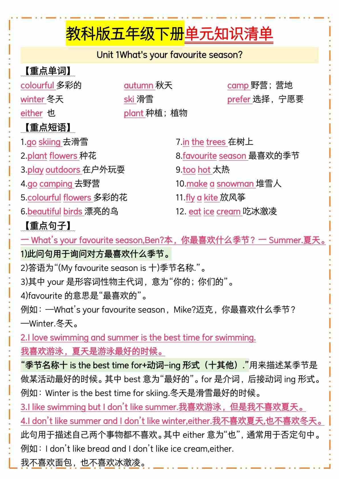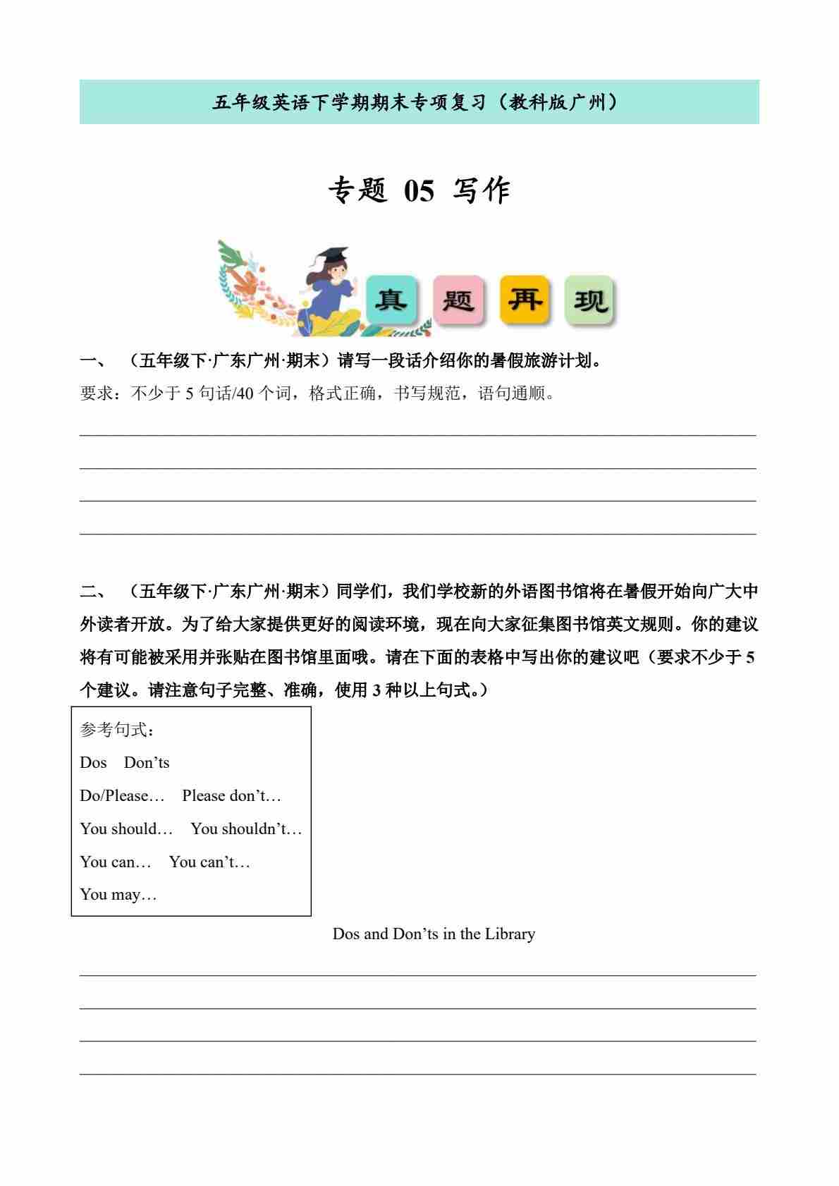 教科版--2024- 2024-2025学年五年级英语下学期专项复习