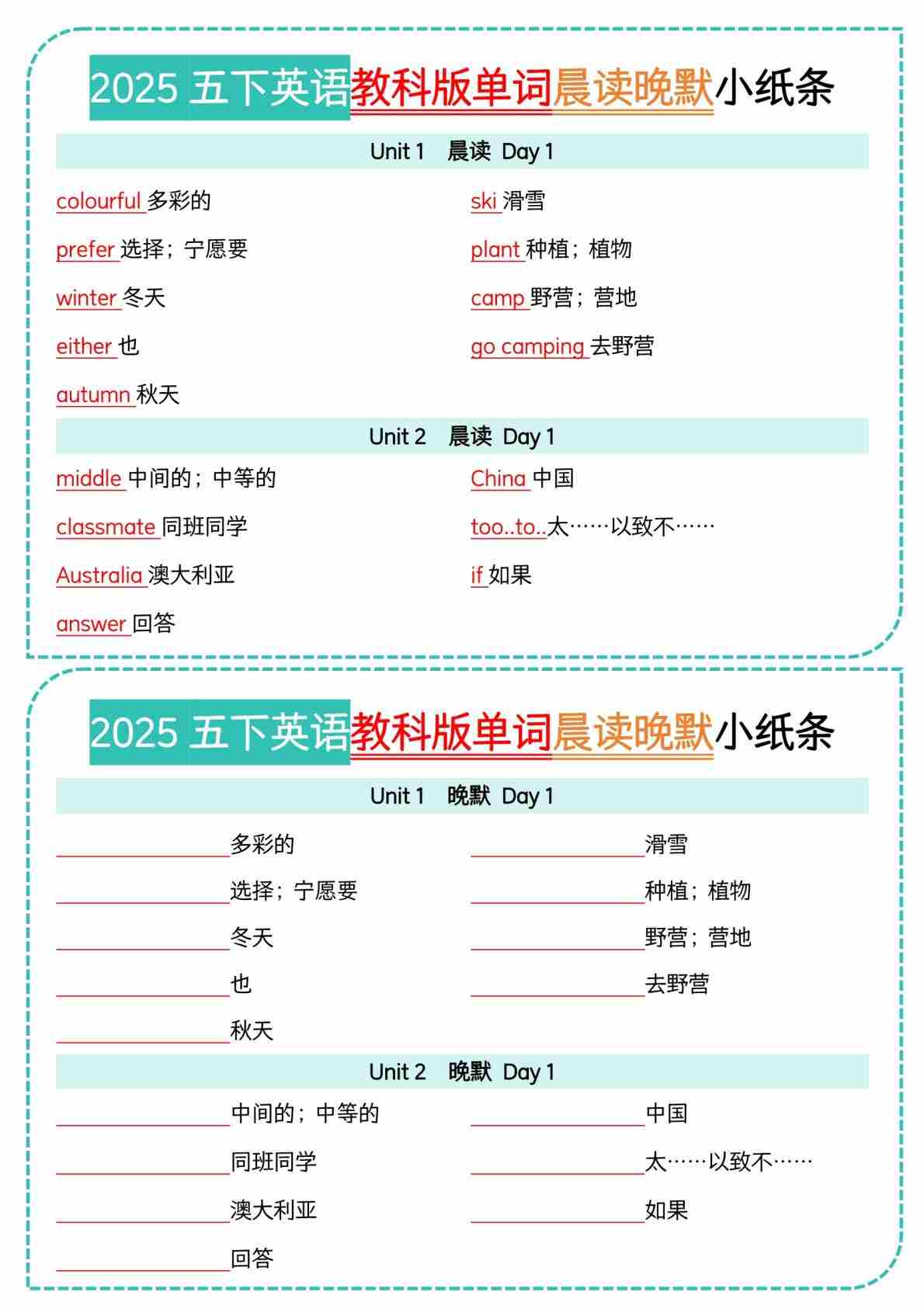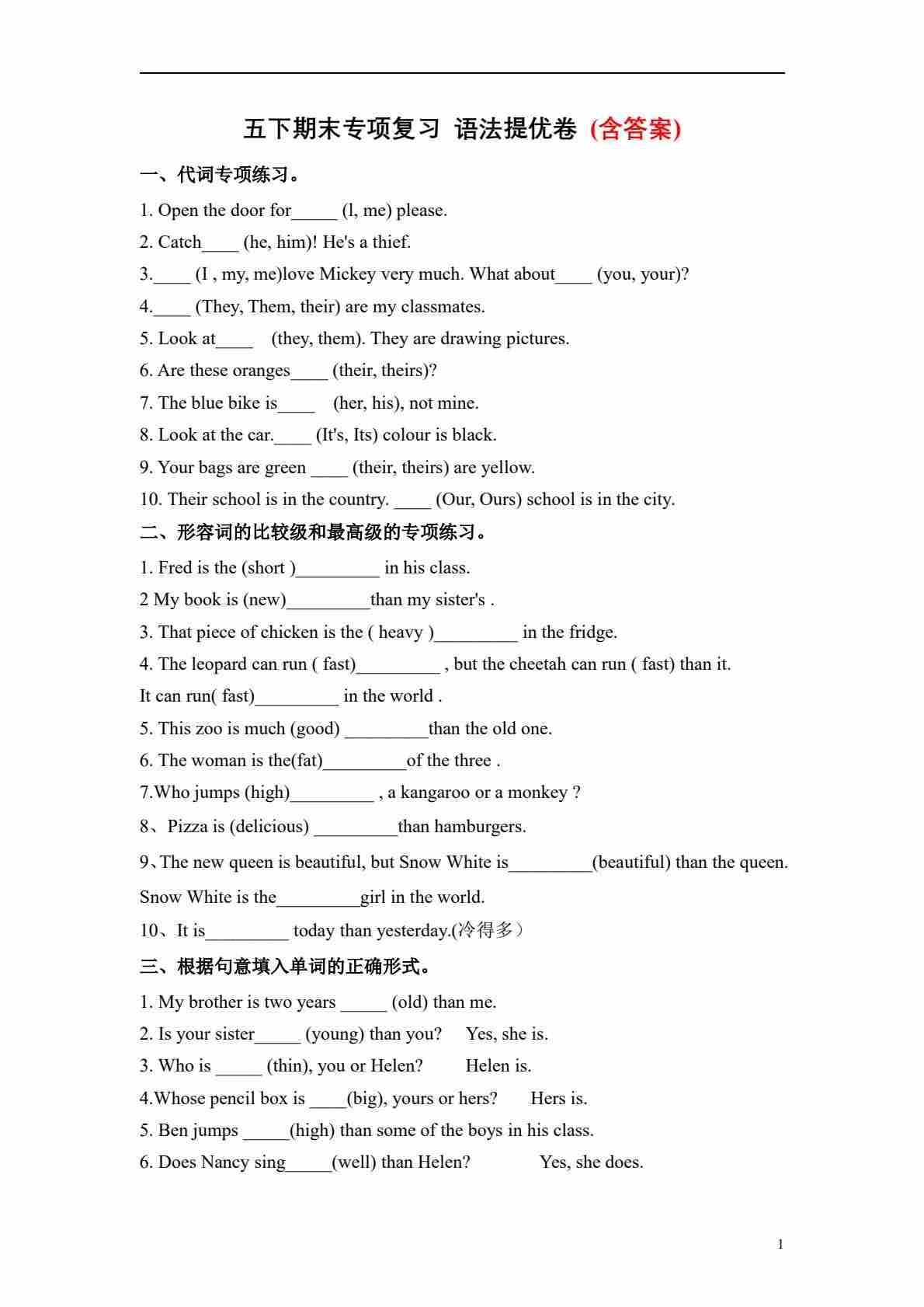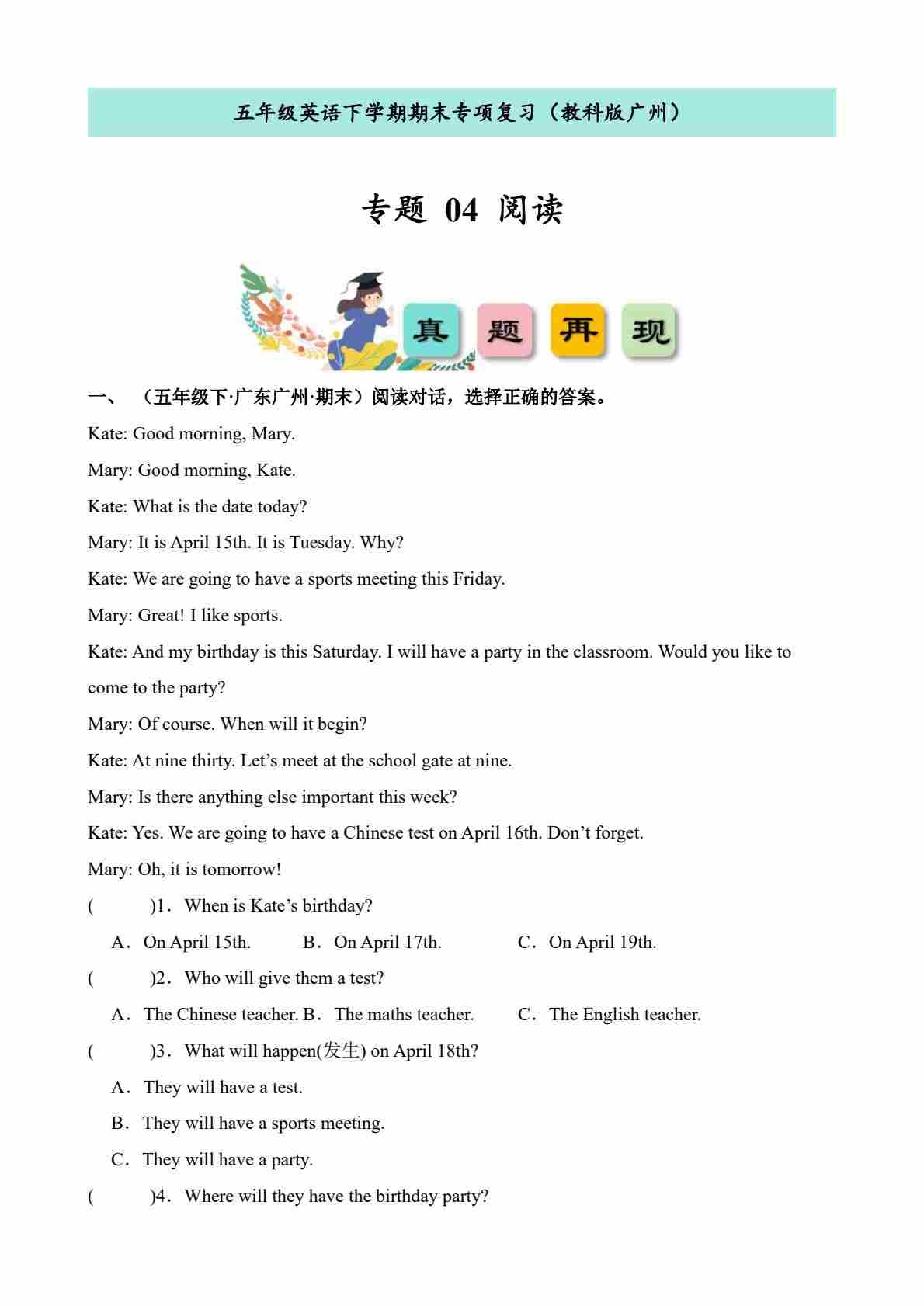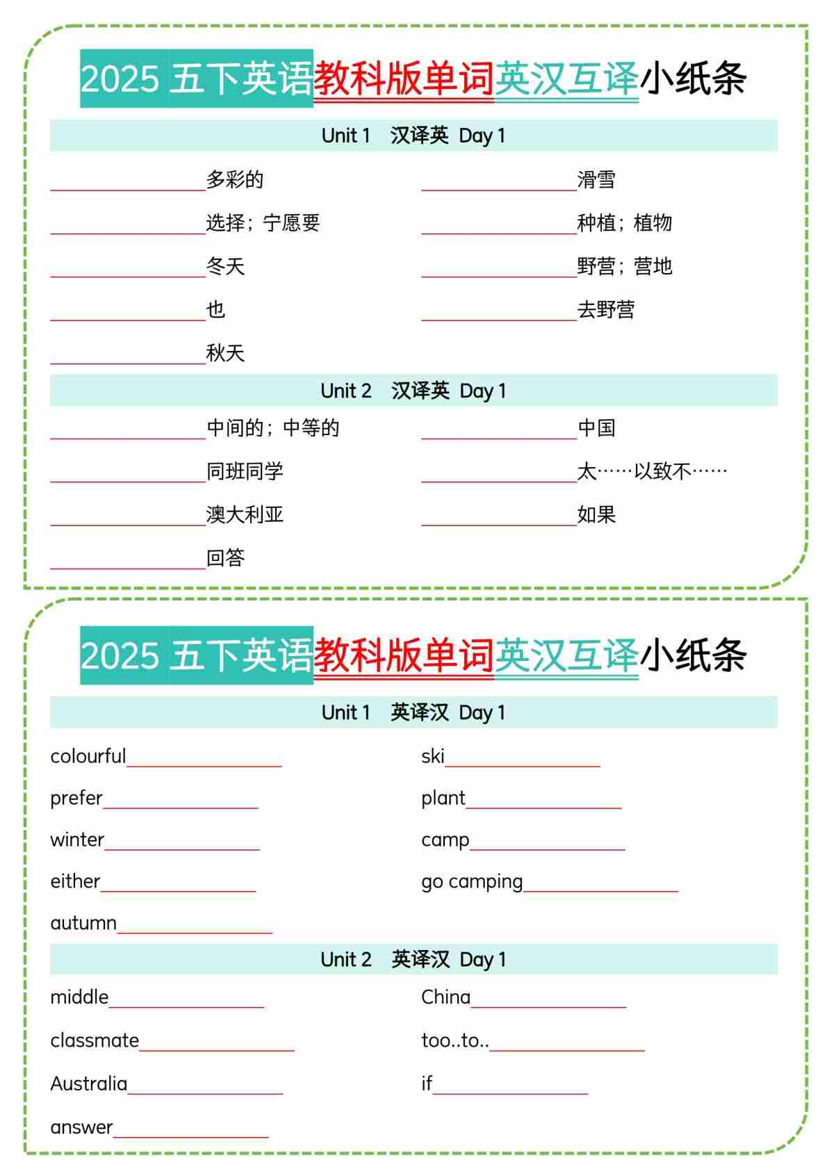 教科版--2024- 2024-2025学年五年级英语下学期专项复习
