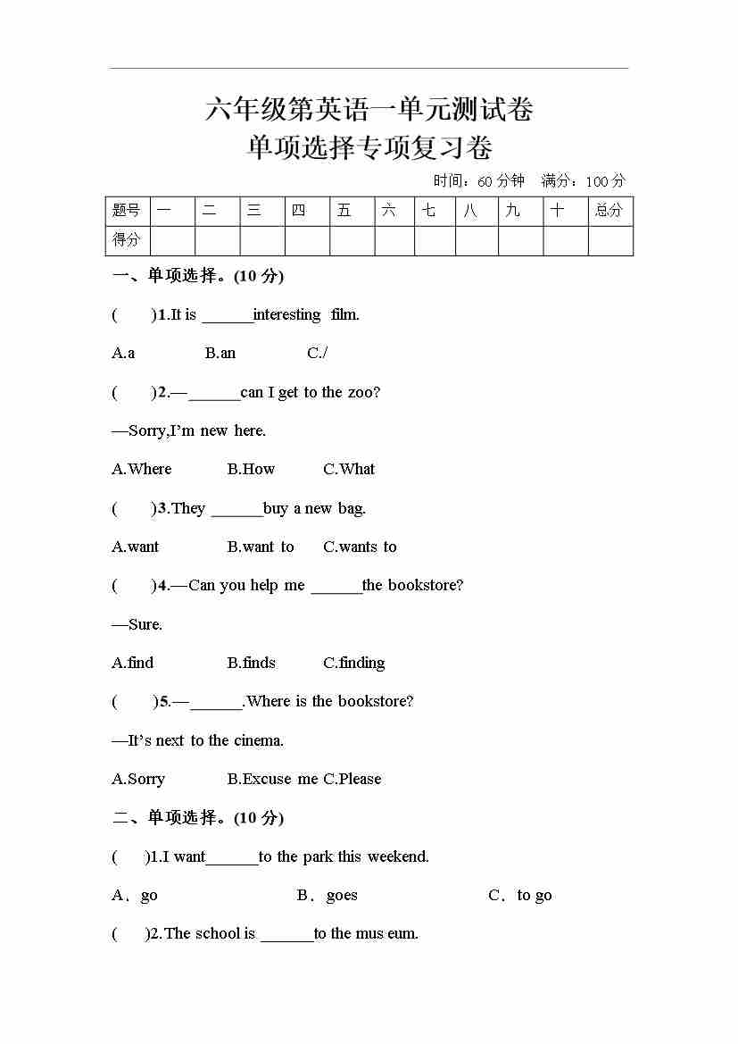 【单元专项训练】六年级上册英语-Unit 1 How can I get there 单项选择 人教PEP版 (含答案)