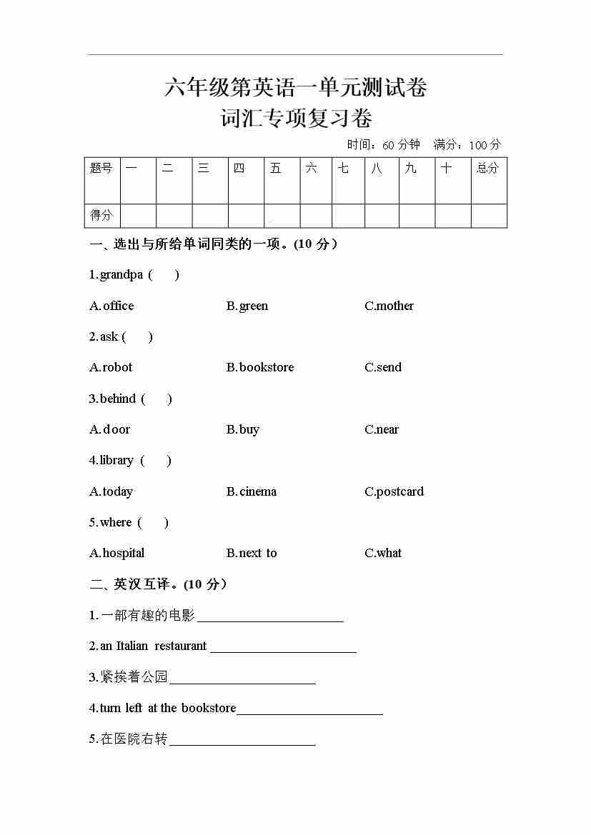 【单元专项训练】六年级上册英语-Unit 1 How can I get there 词汇 人教PEP版 (含答案)