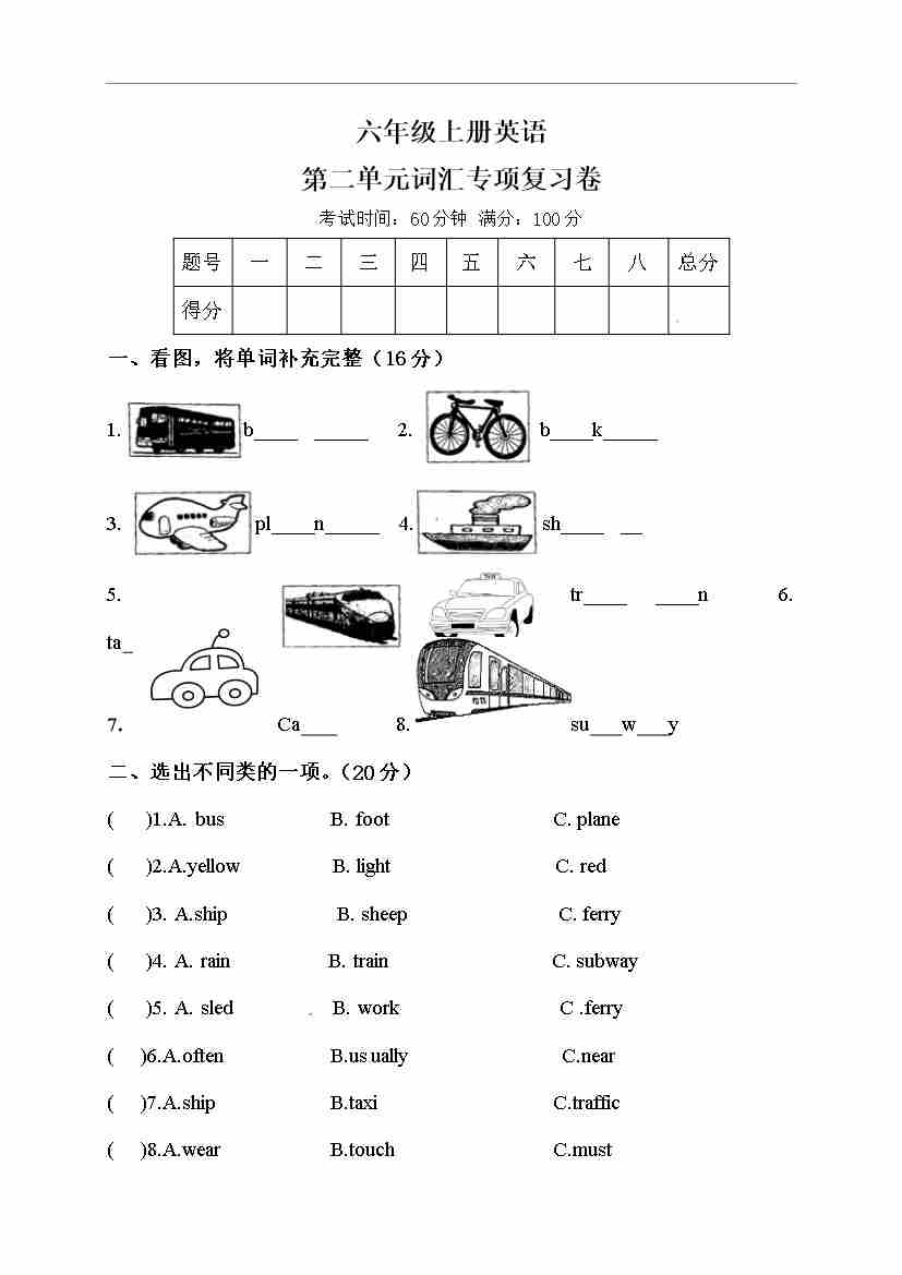 【单元专项训练】六年级上册英语-Unit 2 Ways to go to school 词汇 人教PEP版 (含答案)