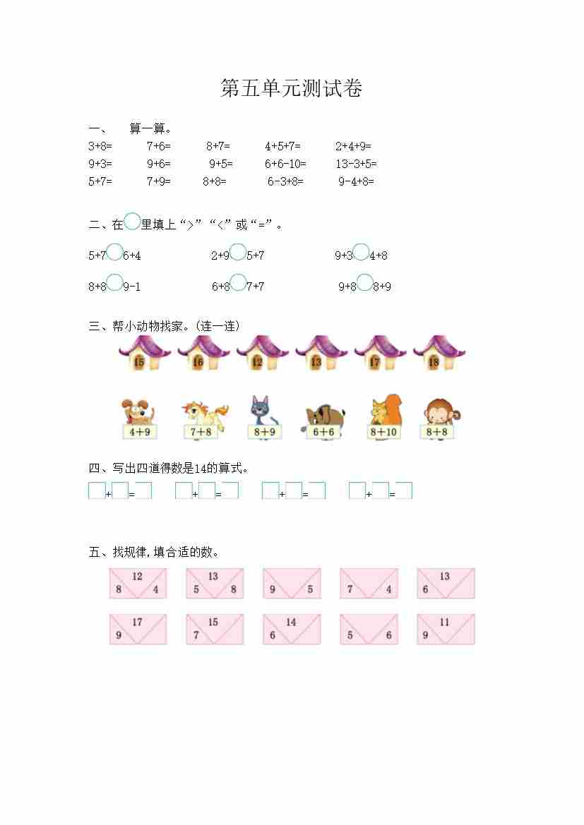 5.2 8加几的进位加法 同步分层作业-数学一年级上册(学生版)(青岛六三版·)