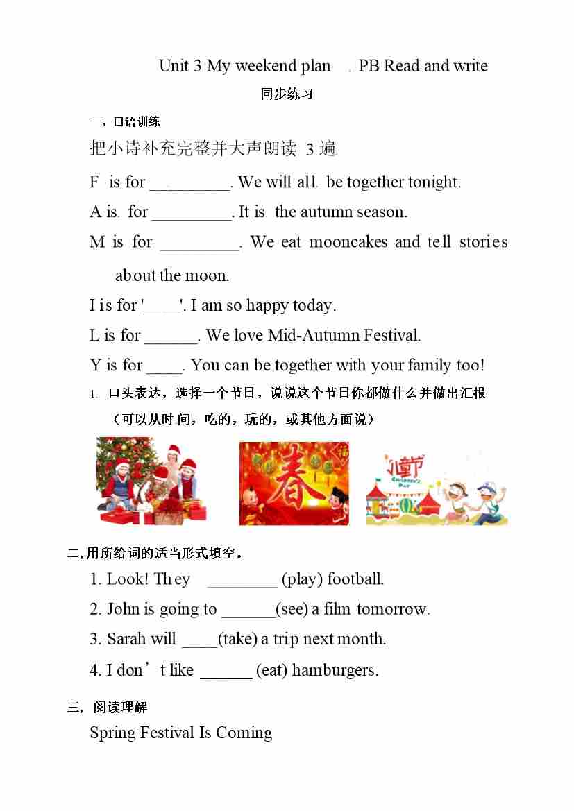 六年级上册英语同步练习-Unit 3 My weekend plan PB Read and write(人教PEP 含答案)