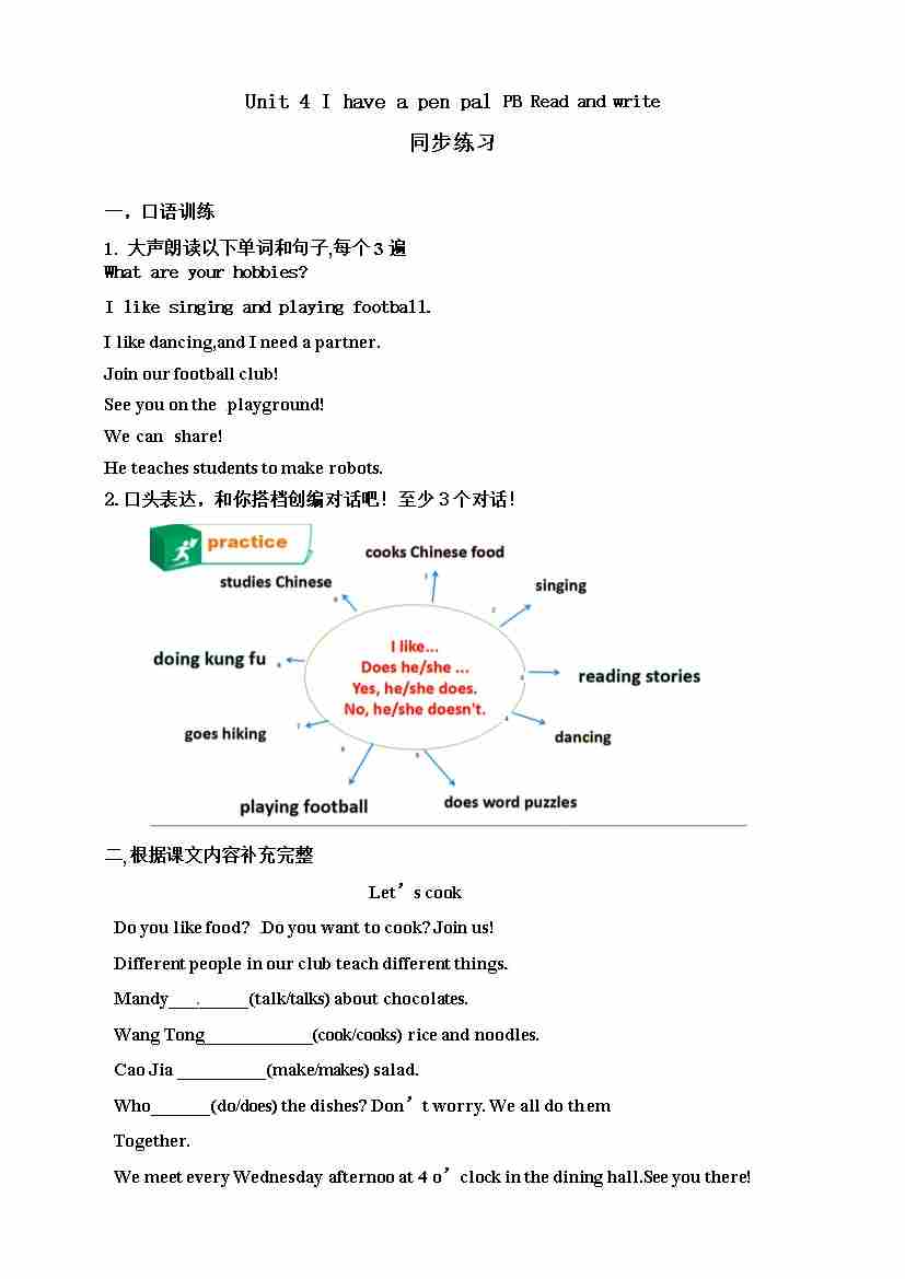 六年级上册英语同步练习-Unit 4 I have a pen pal PB Read and write 练习