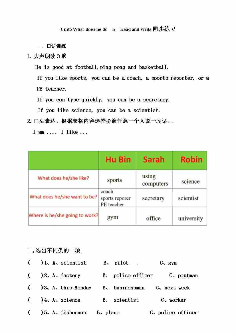 六年级上册英语同步练习-Unit 5 What does he do B Read and write练习