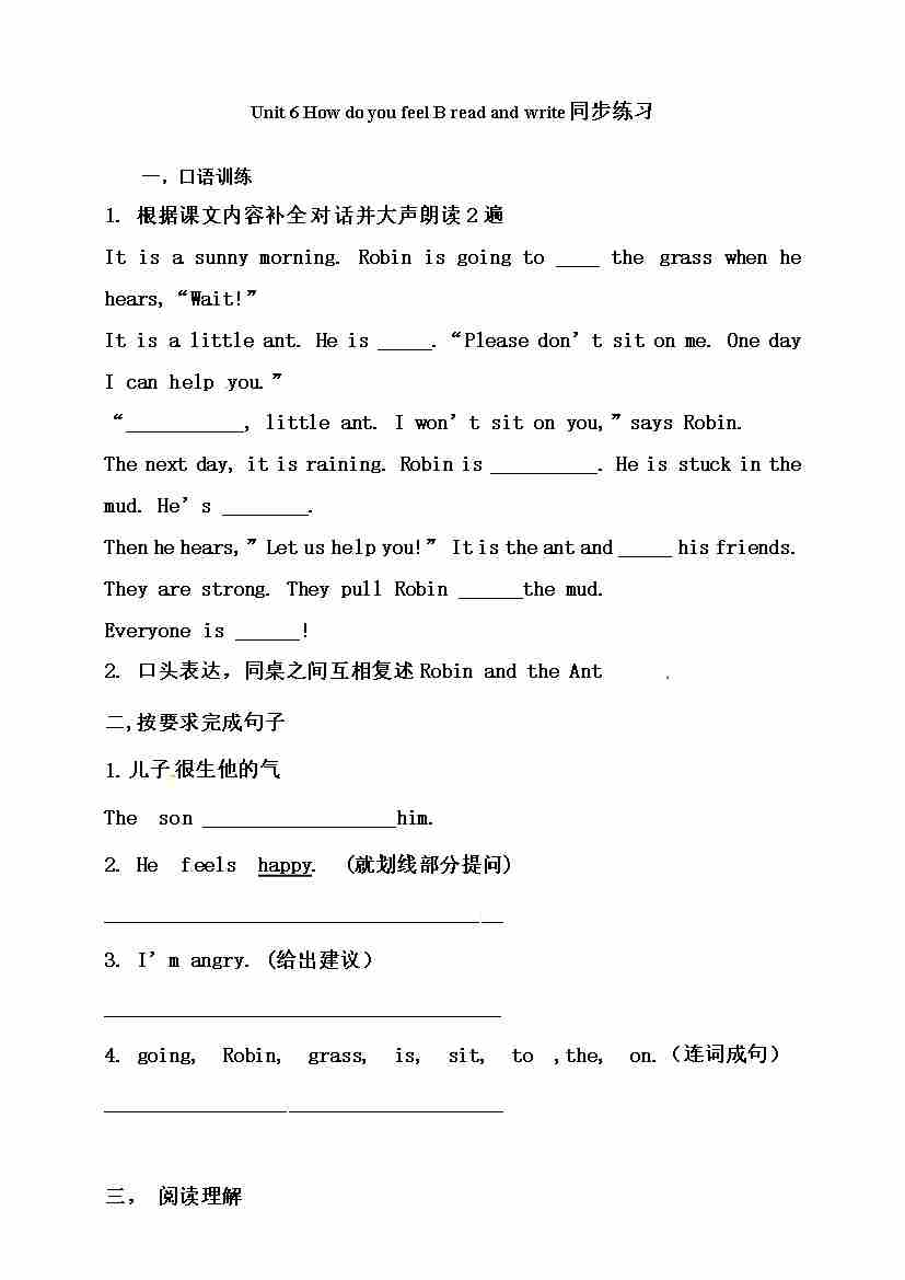 六年级上册英语同步练习-Unit 6 How do you feel B Read and write练习