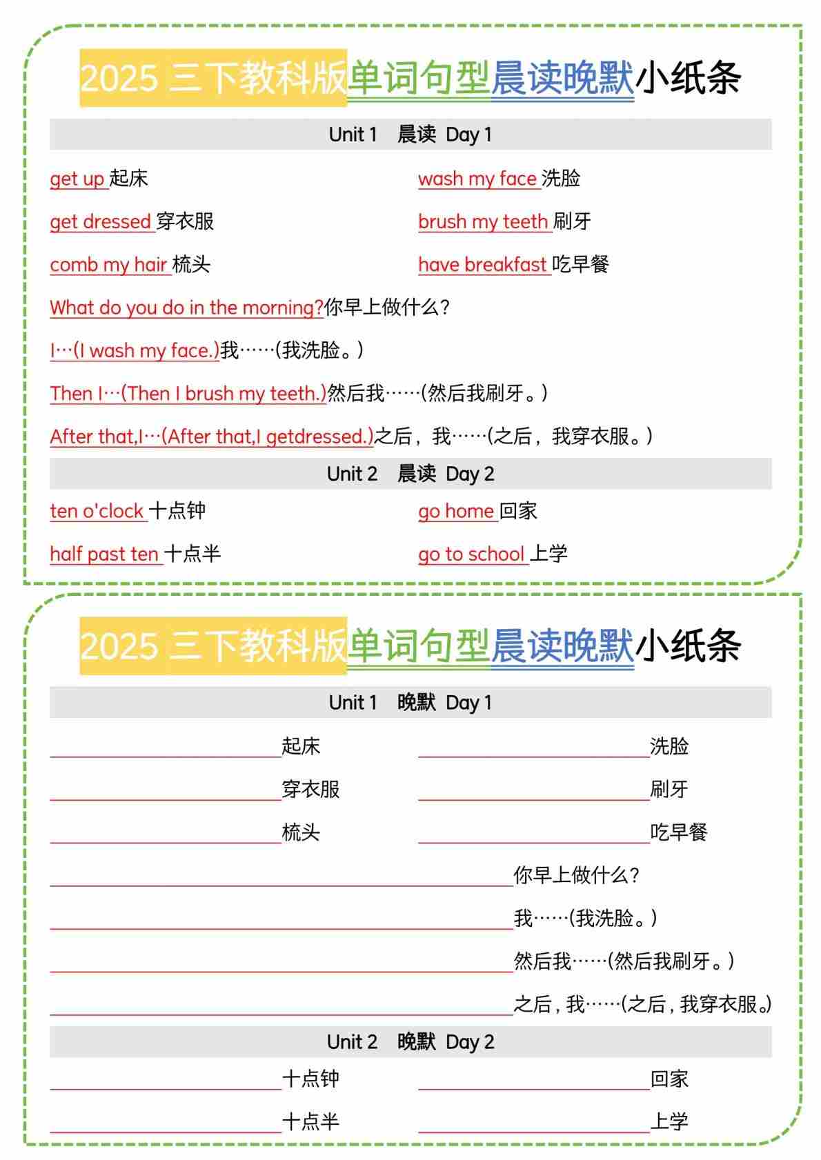 2025春三下广州教科版英语单词词块默写(背诵单) - Unit 1-8
