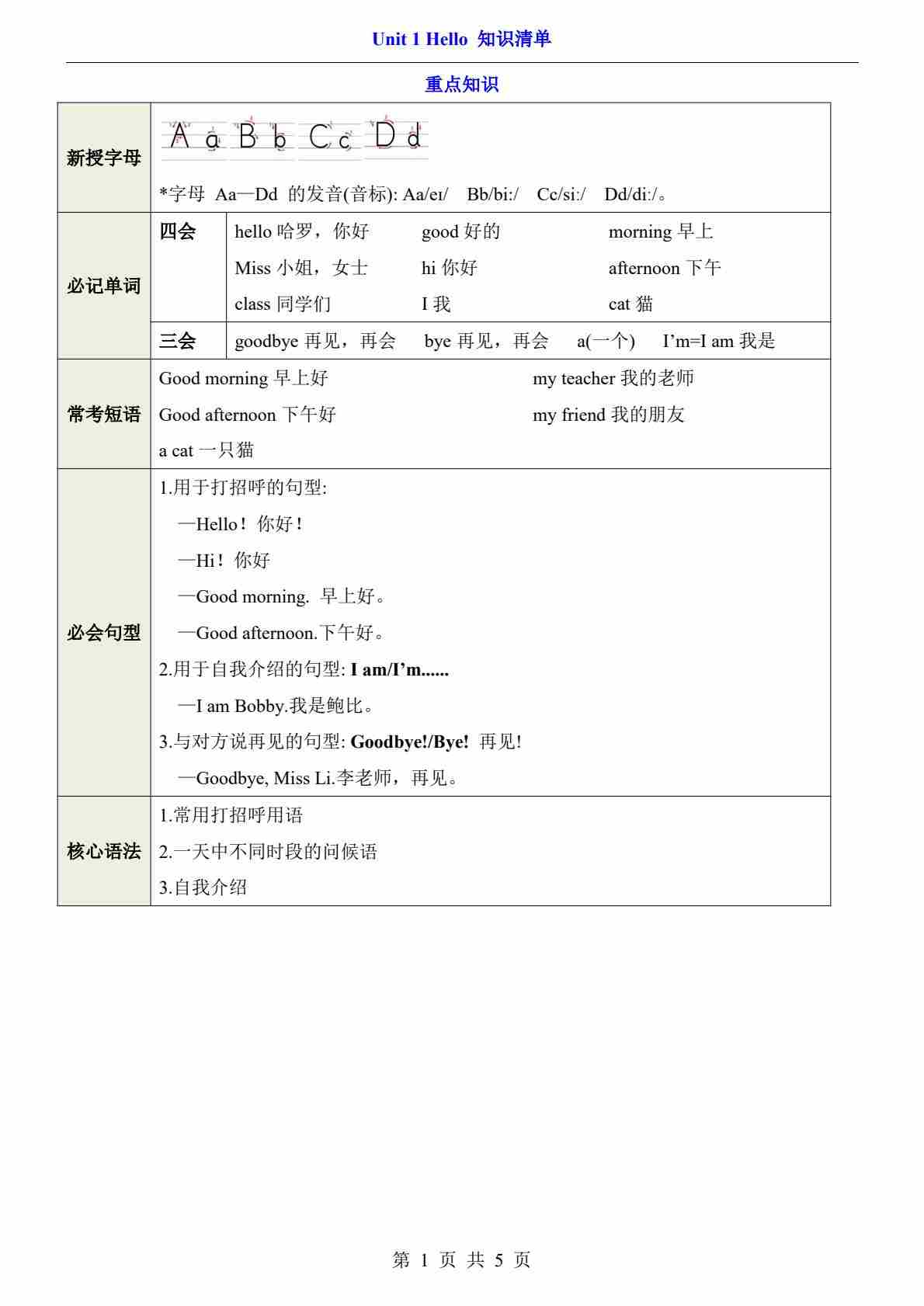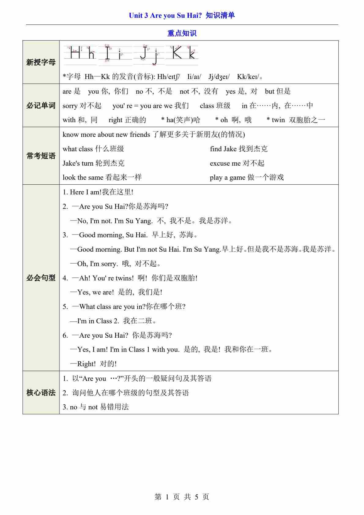 三上译林Unit 1(知识清单)