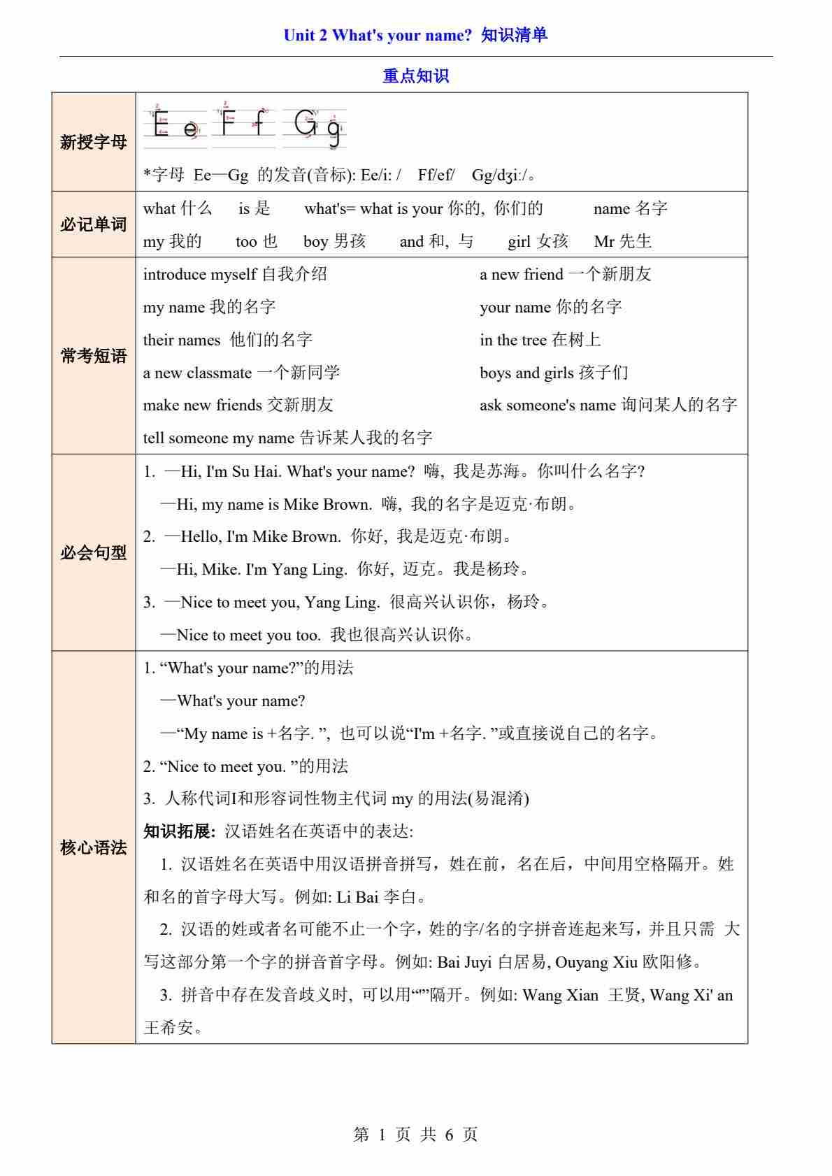 2024 新三年级英语上册 单元知识清单+巩固练习 Unit 6 译林版(三起)