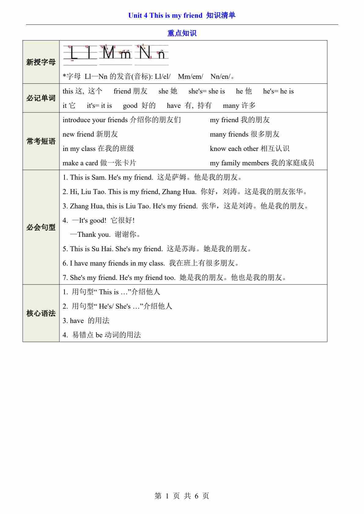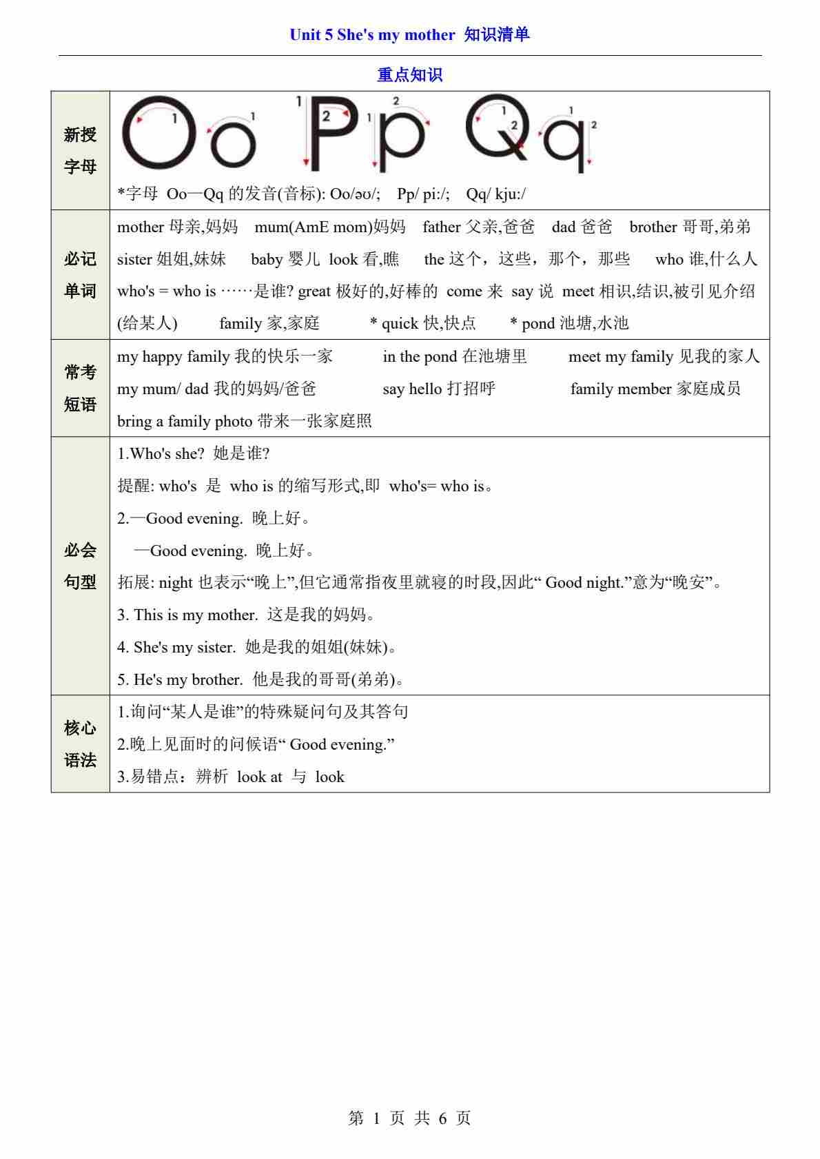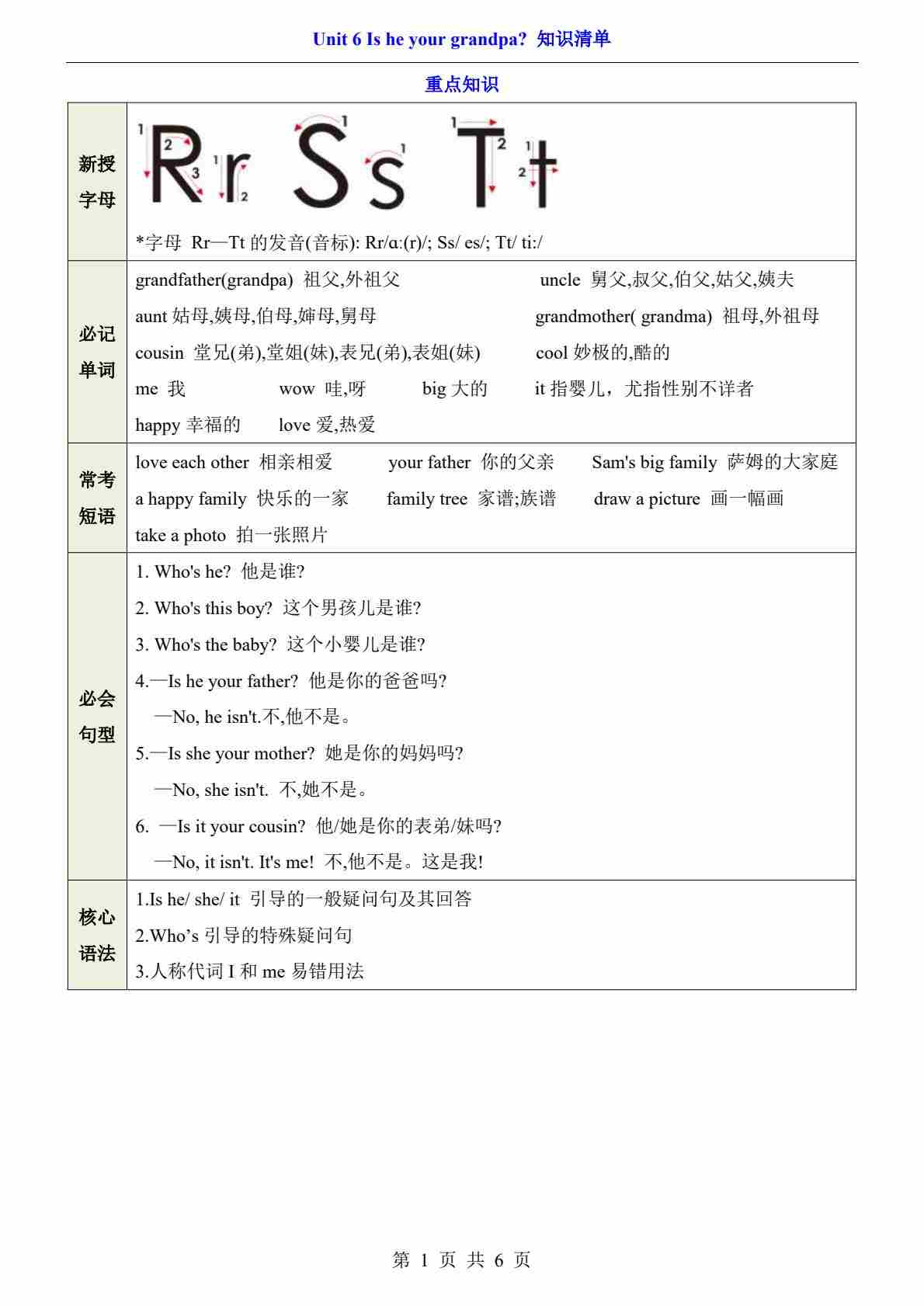 三上译林Unit 6(知识清单)