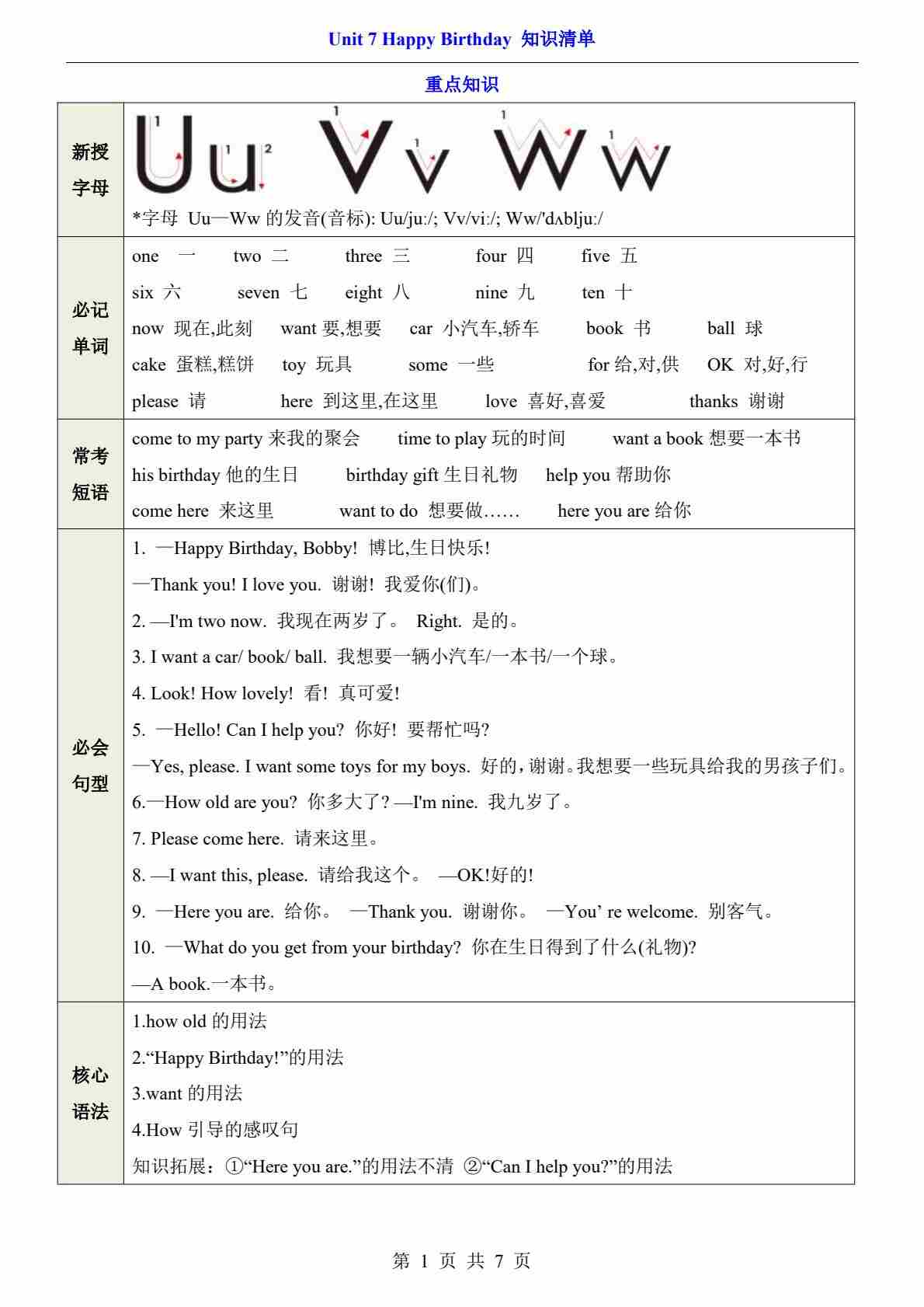 三上译林Unit 7(知识清单)