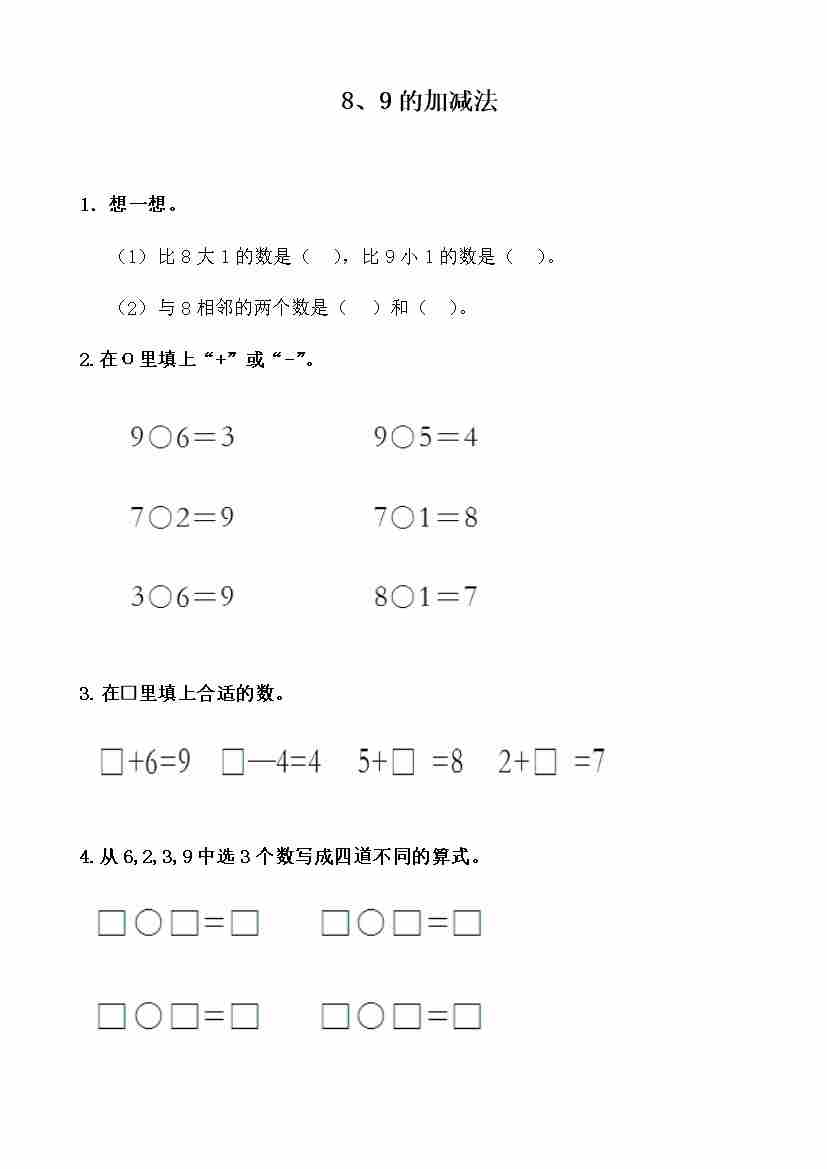 练习题-5.5 8、9的加减法