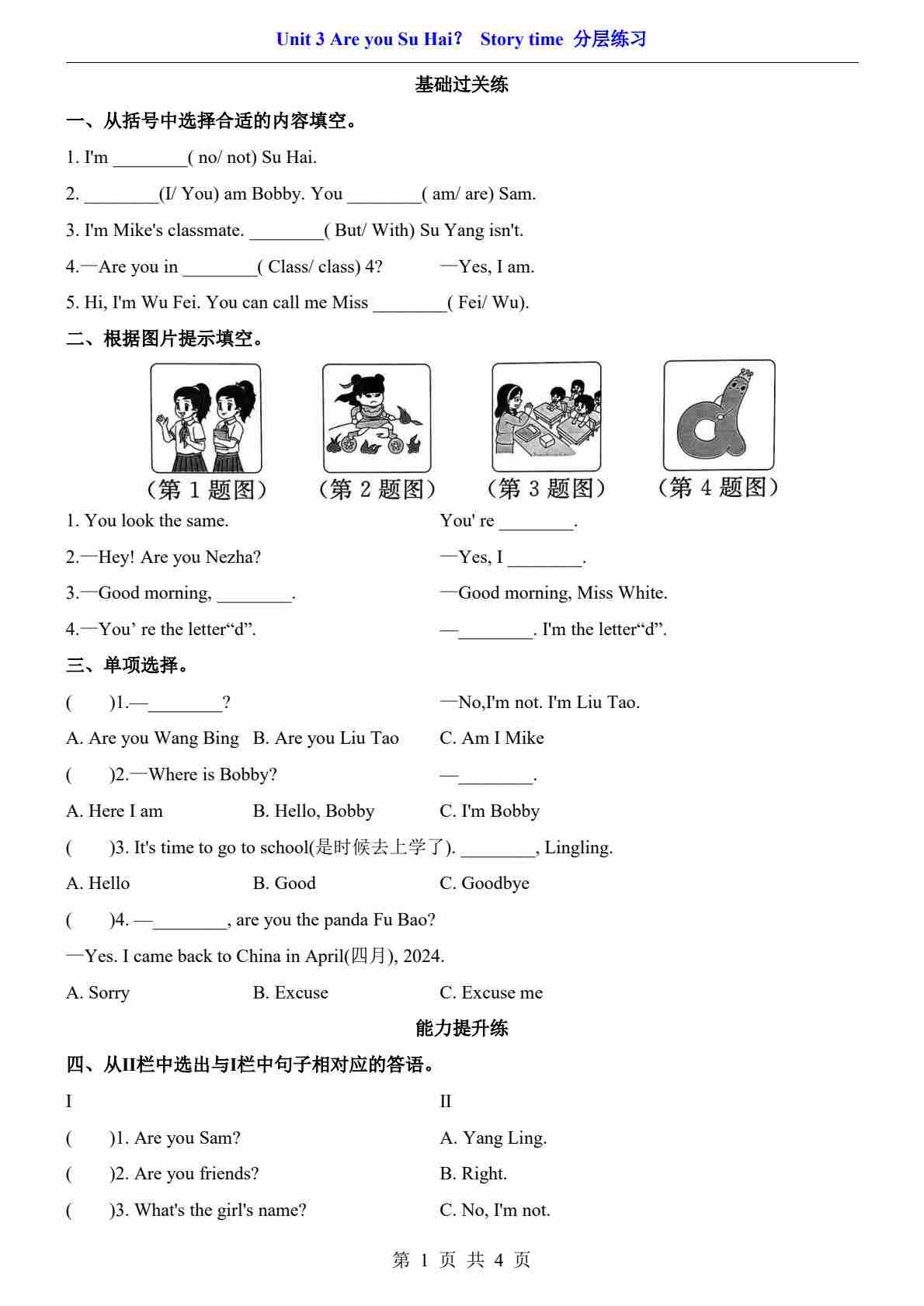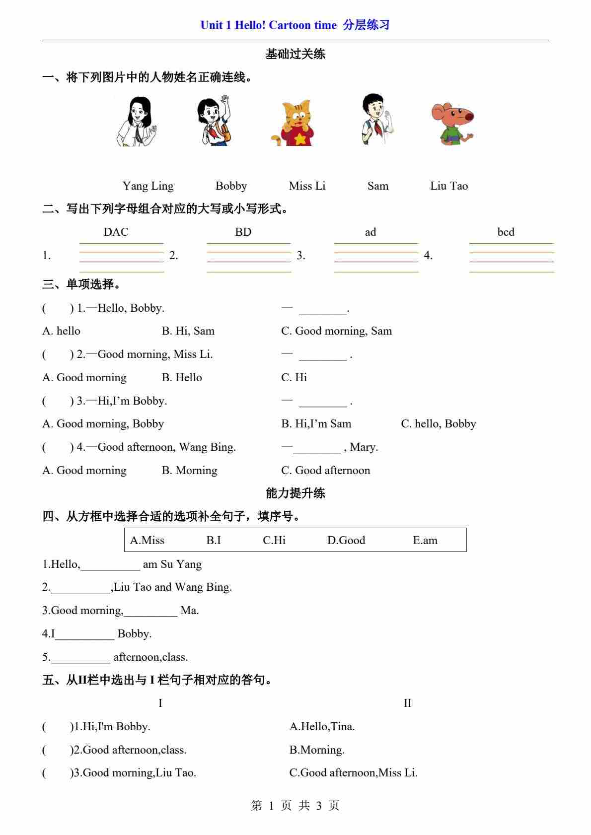 Unit 1.1 Cartoon time (分层练习)
