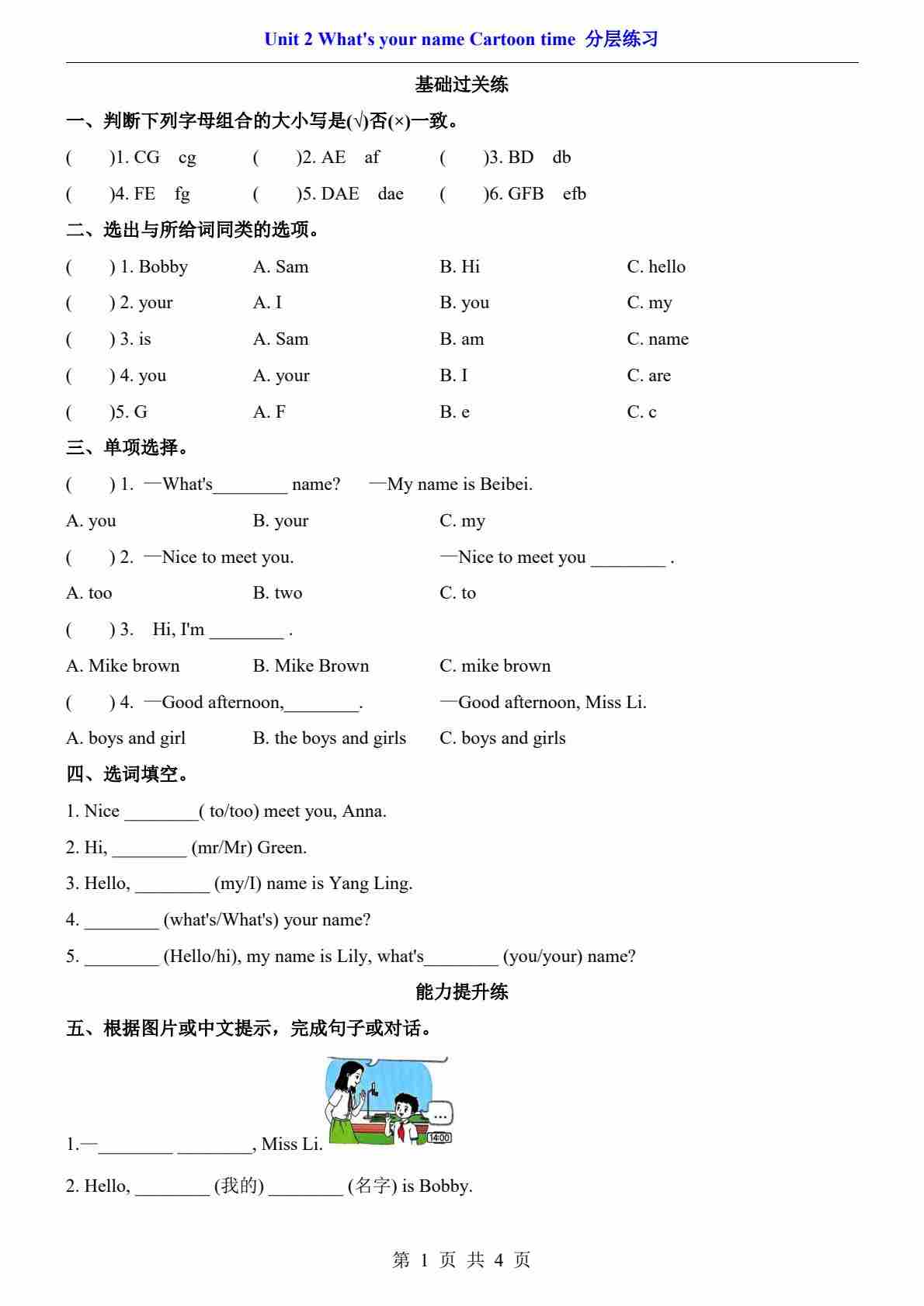 Unit 2.1 Cartoon time(分层练习)