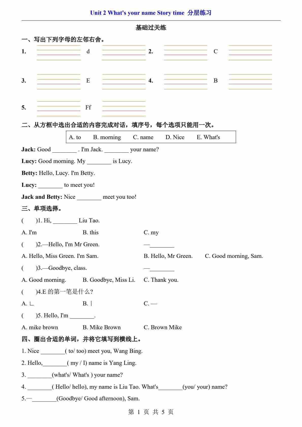 Unit 2.2 Story time(分层练习)
