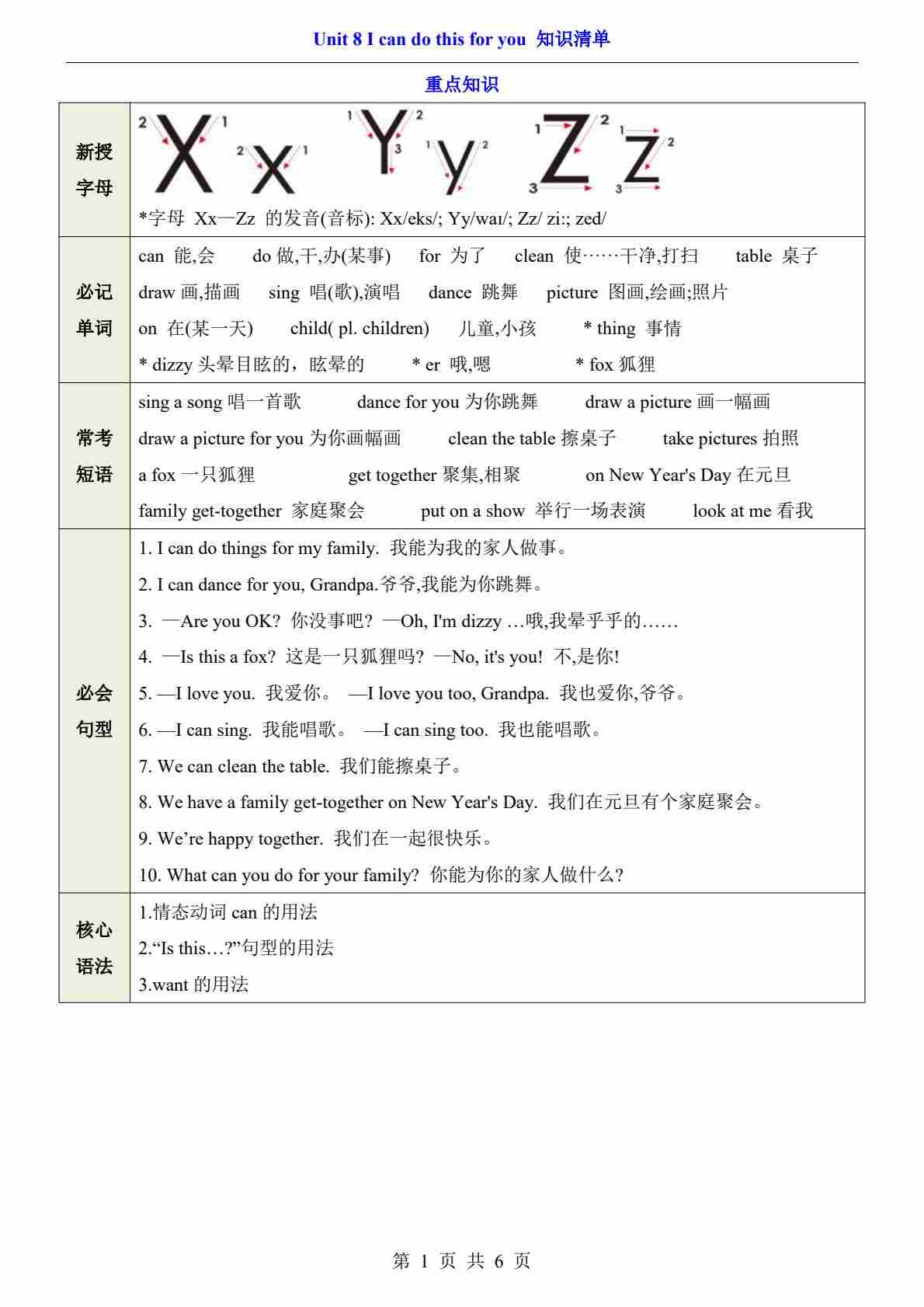 三上译林Unit 8(知识清单)