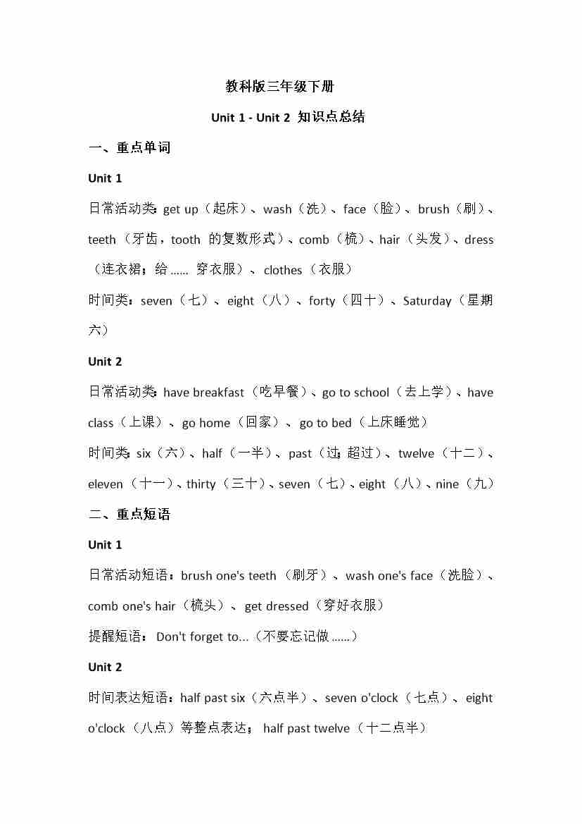 Unit 1 - Unit 2 知识点总结及练习(知识清单)- 教科版(2024)英语三年级下册