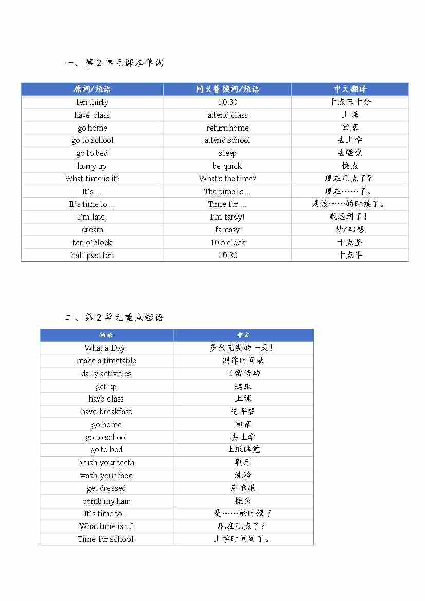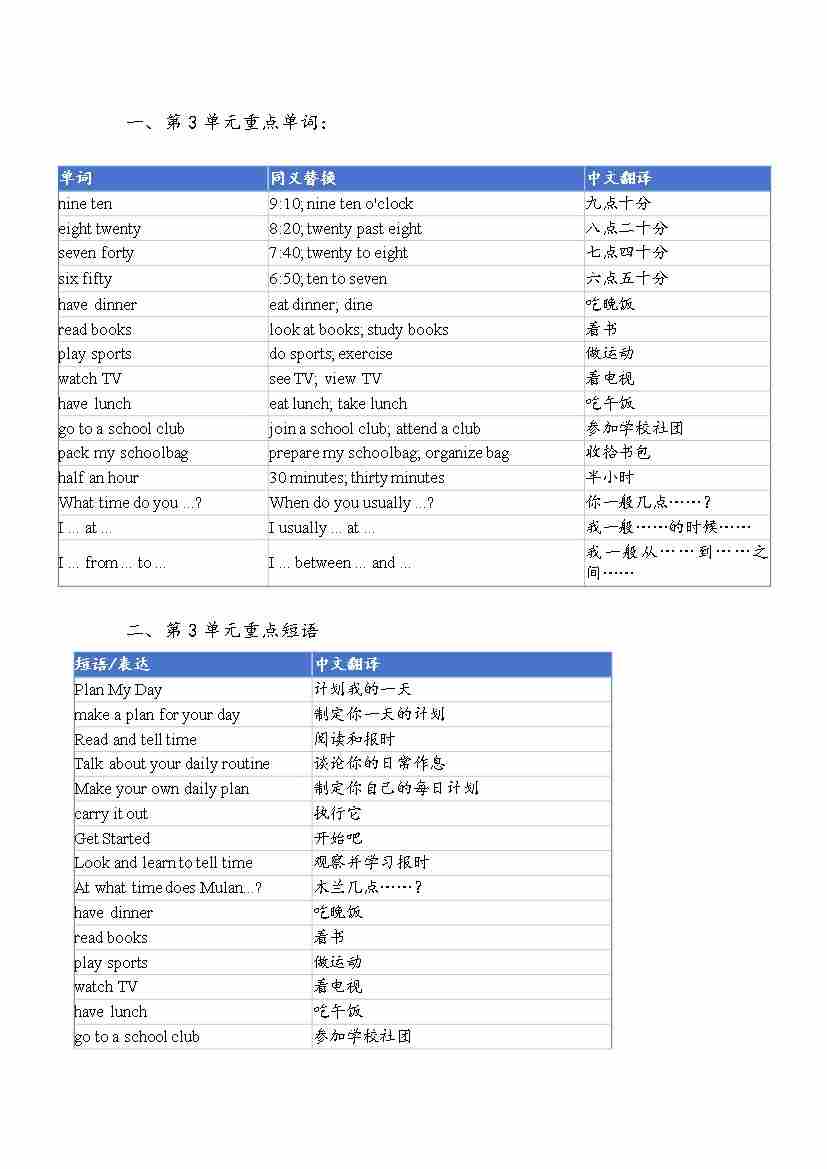 Unit 3 Plan My Day(知识清单)- 教科版(2024)英语三年级下册