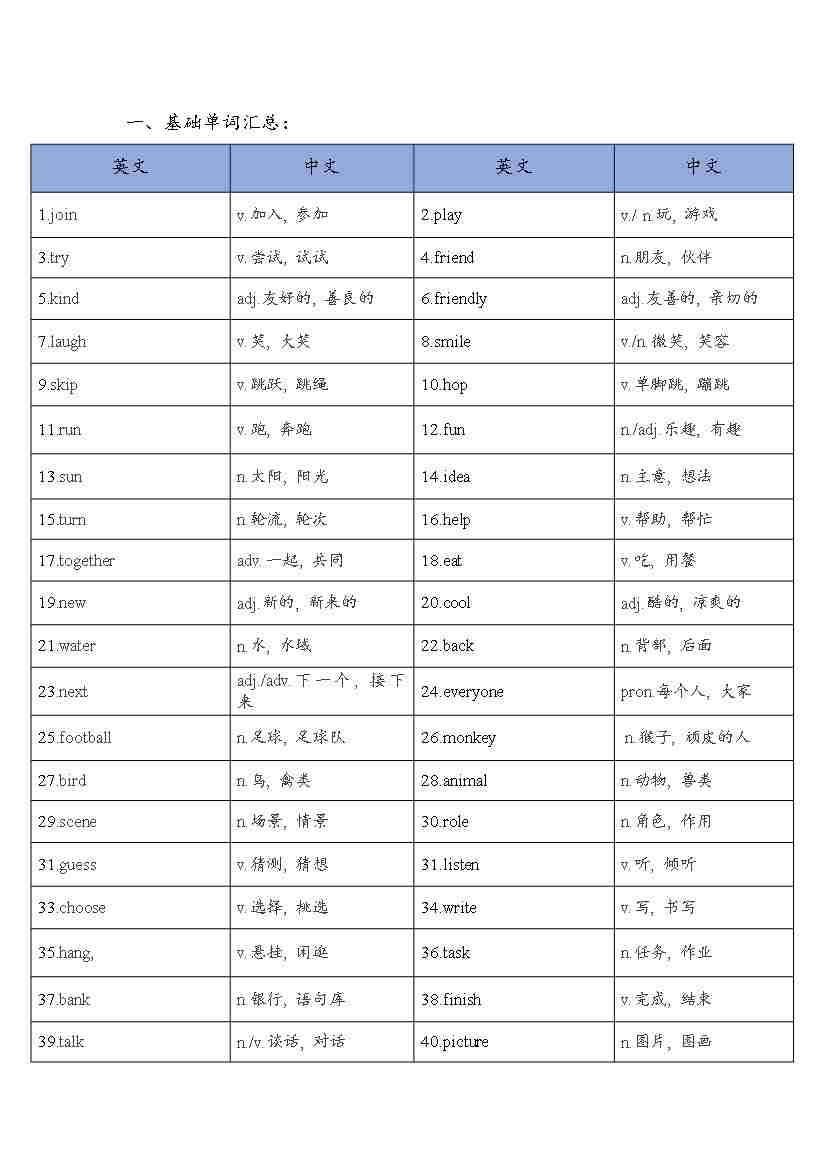 Unit 4 Come and Join Us重点单词重点短语和重点句子(知识清单)- 教科版(2024)英语三年级下册
