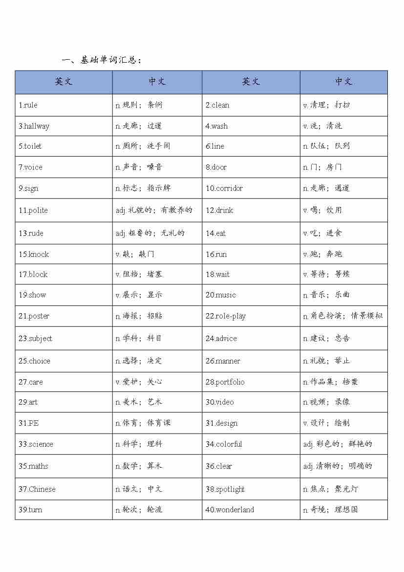Unit 7 School rules重点单词短语句子(知识清单)-教科版(2024)英语三年级下册
