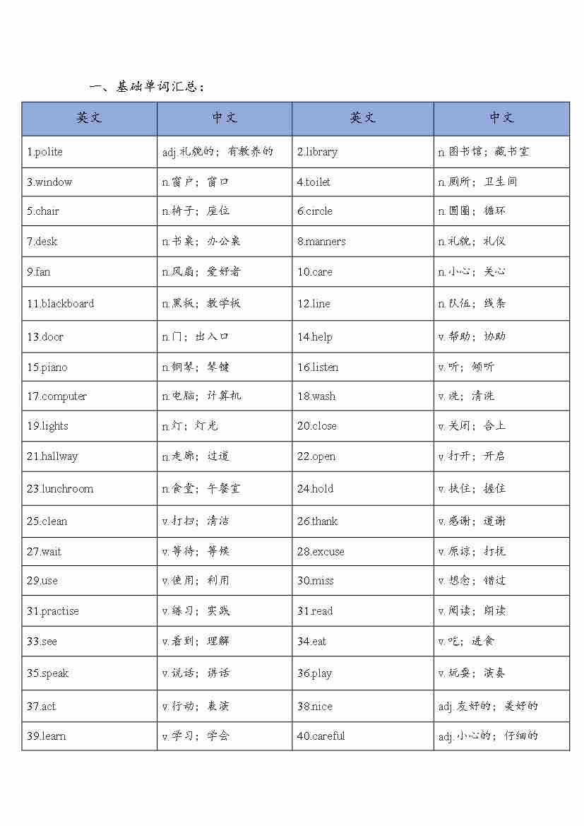 Unit 8 A Polite Way 重点单词短语句子(知识清单)-教科版(2024)英语三年级下册