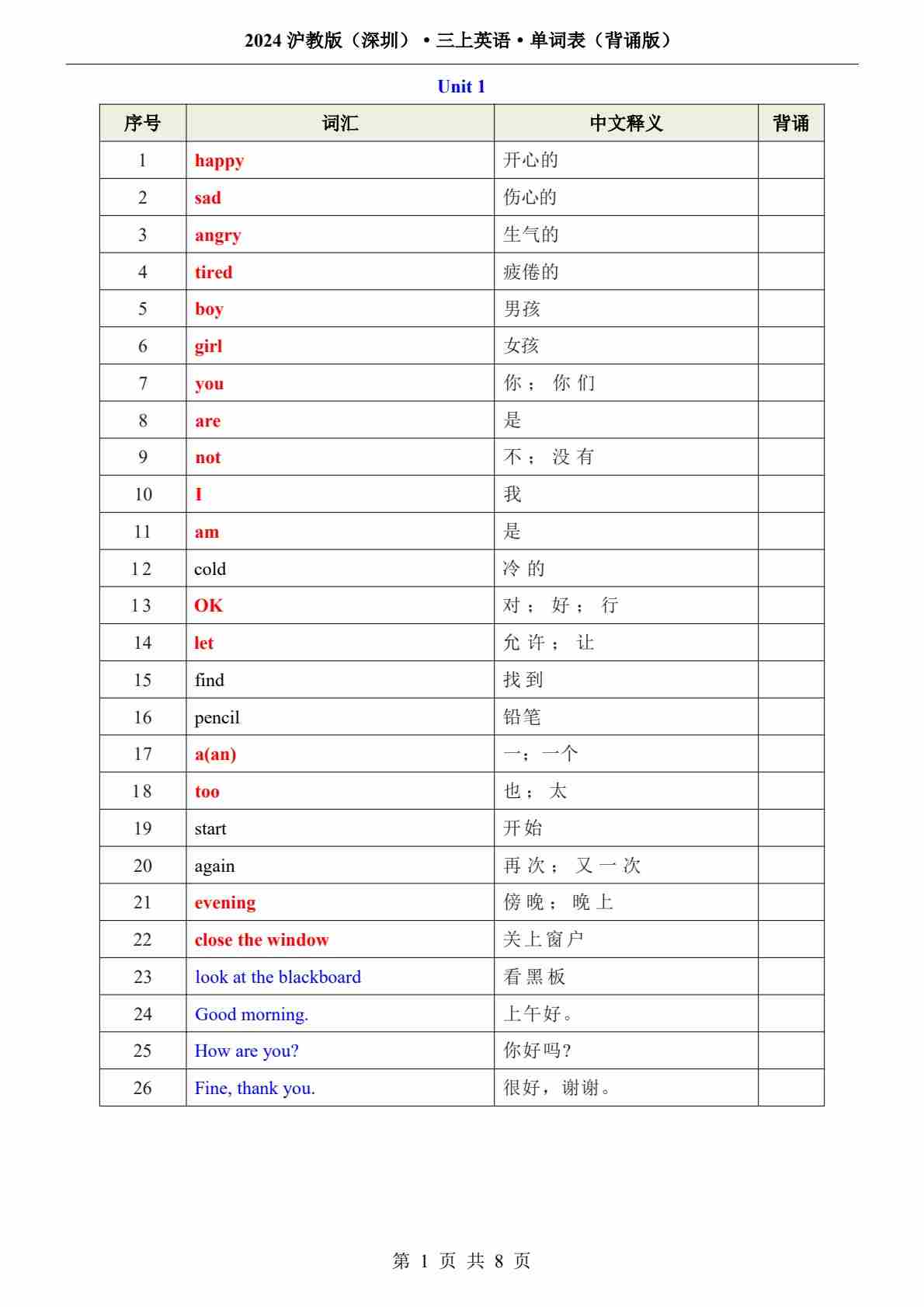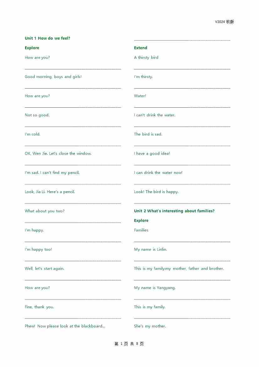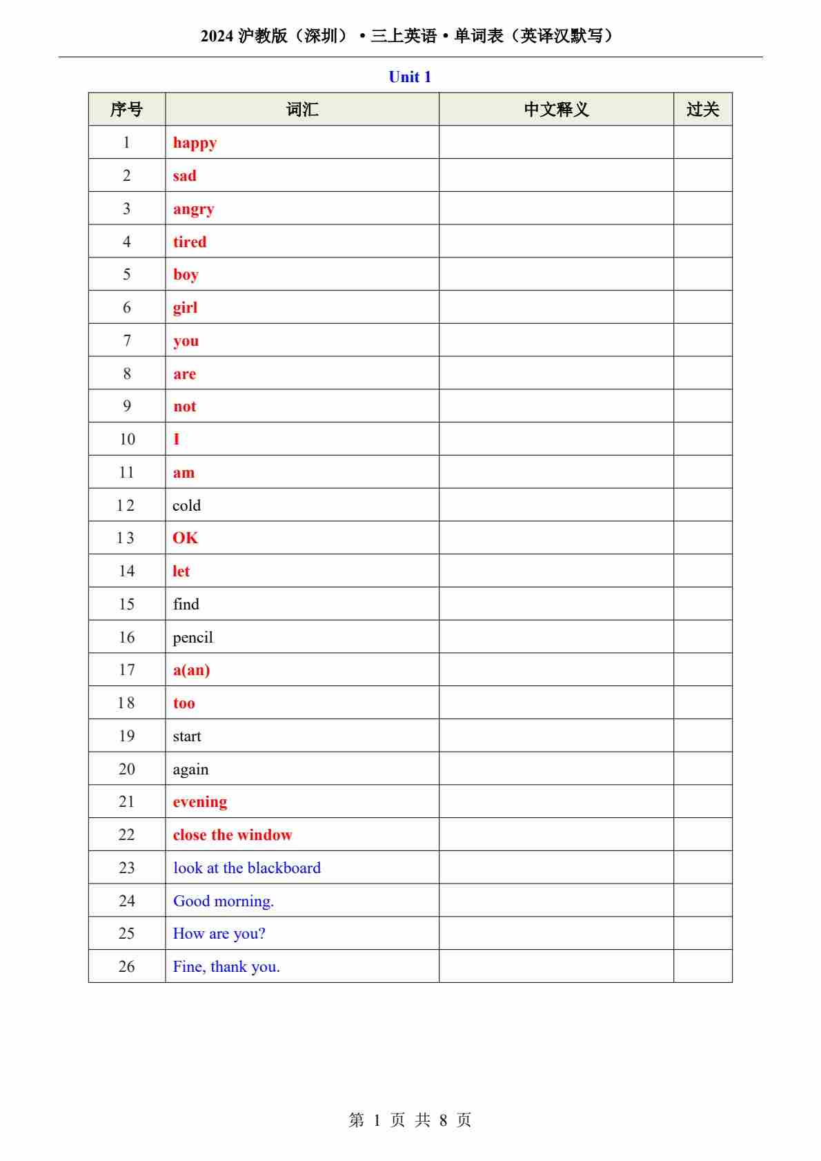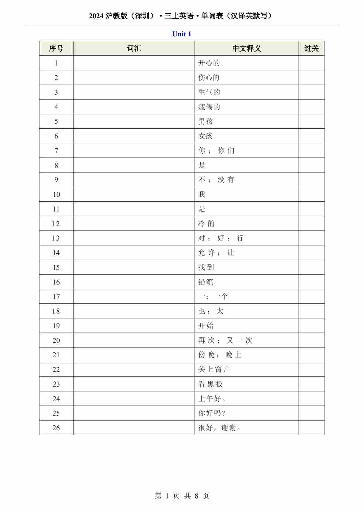 新沪教版三年级上册课文汉译英四线三格版(10页)
