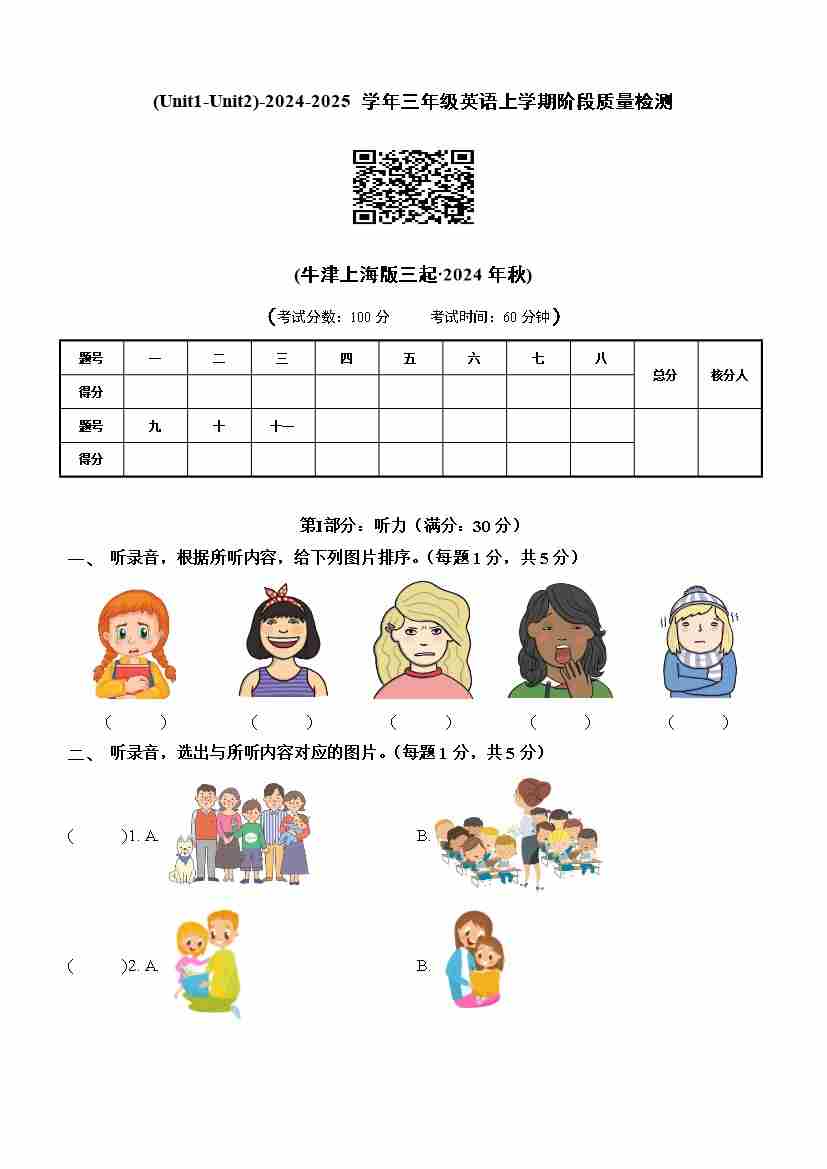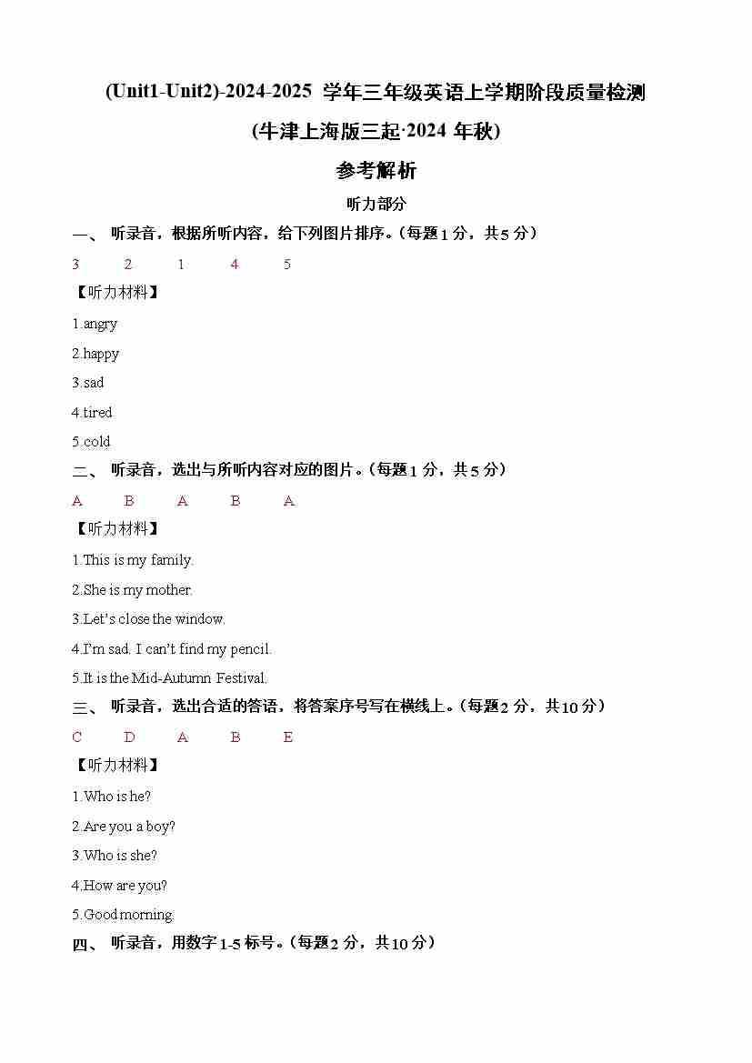 三上沪教第一次月考(Unit1-Unit2)(参考答案)