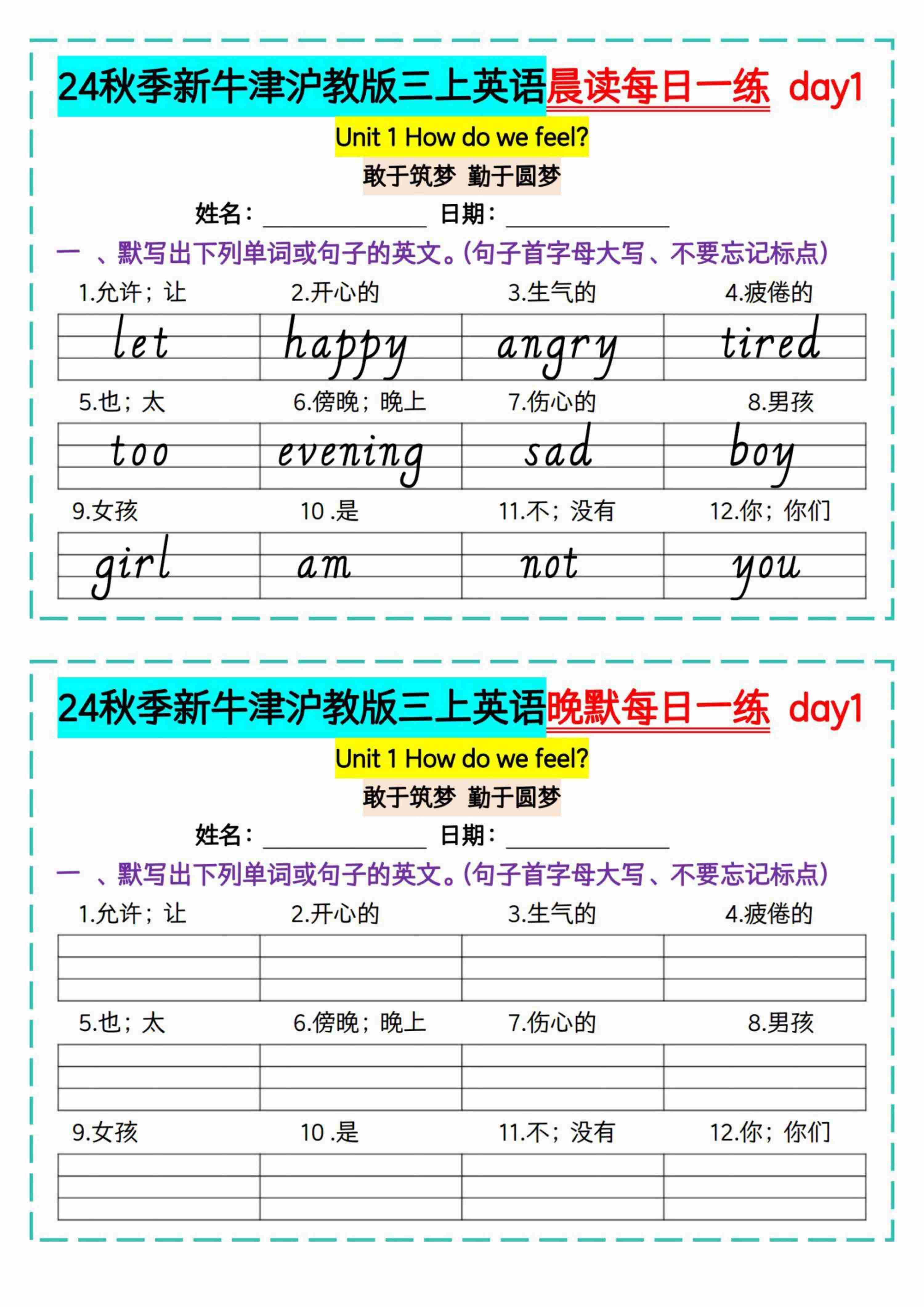 24新沪教牛津三上英语晨读晚默