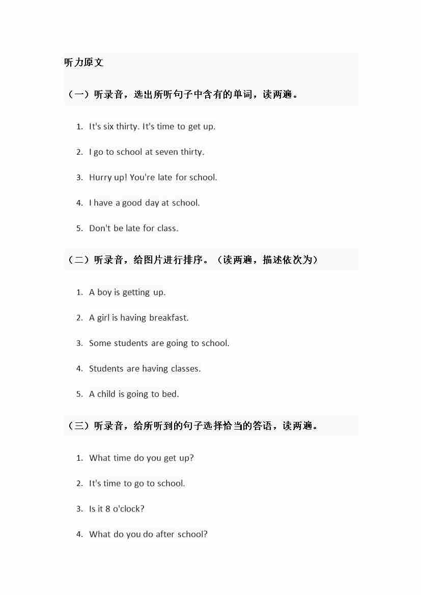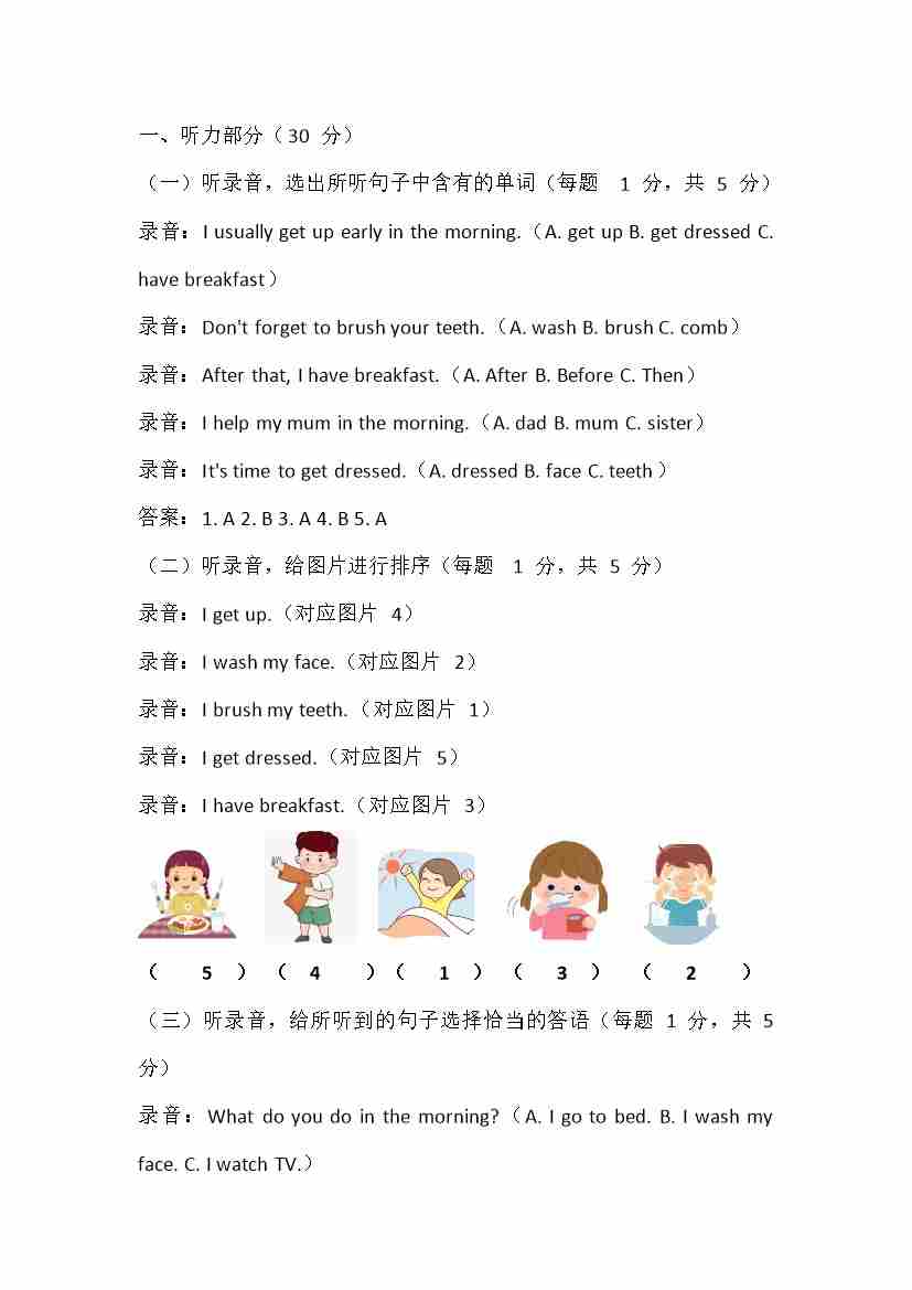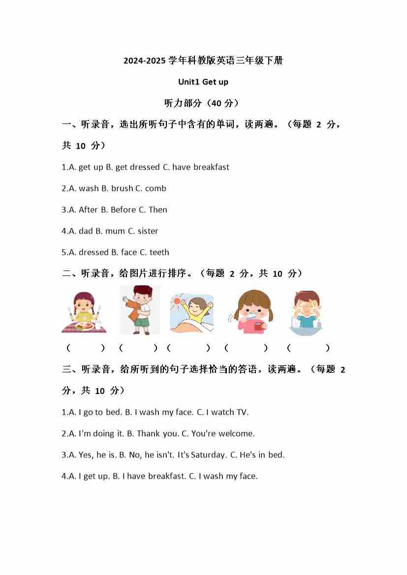 2025科教版三年级年级下册英语Unit1 Get up单元测评卷--听力原文及答案