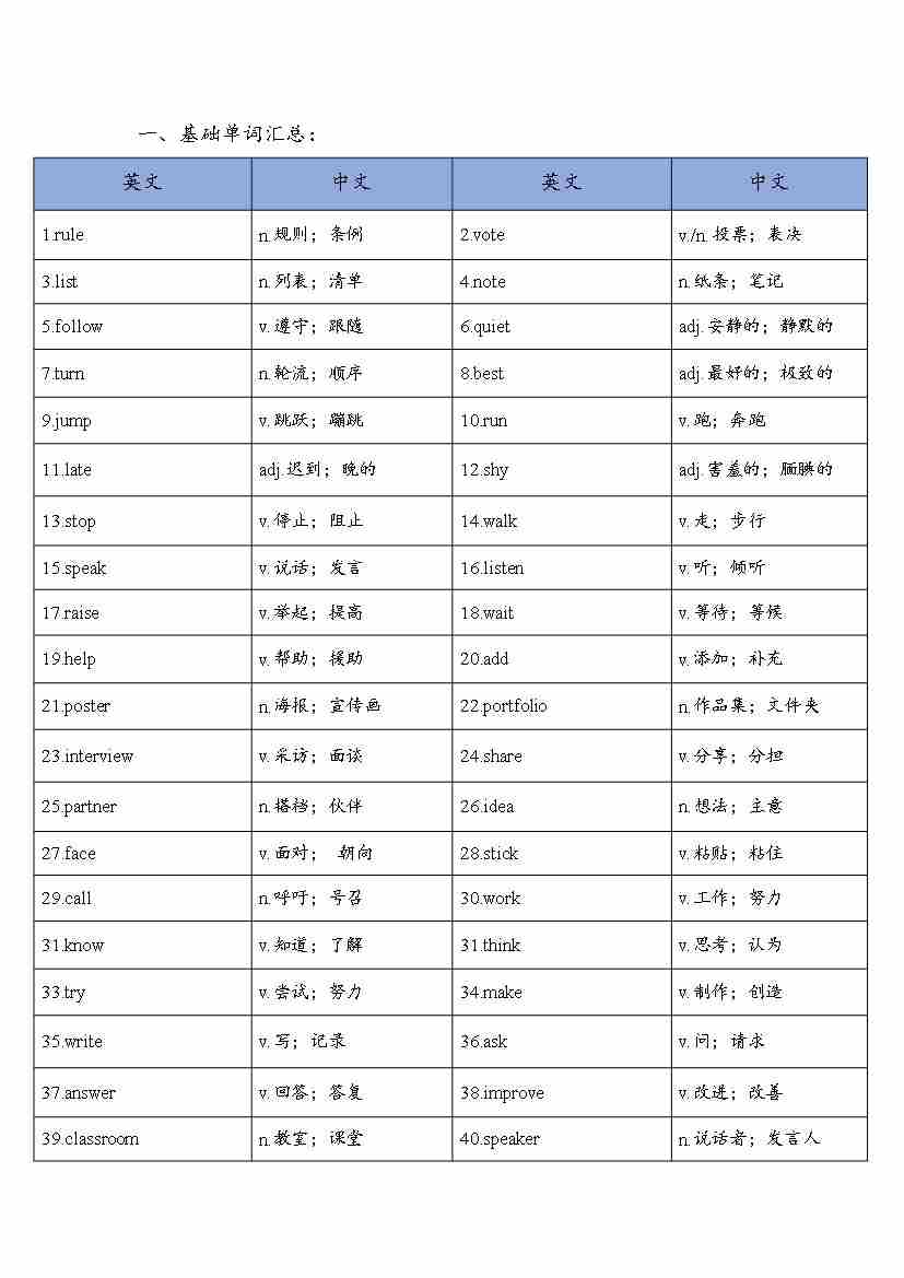 Unit Our Classroom, Our Call重点单词短语句子(知识清单)-教科版(2024)英语三年级下册